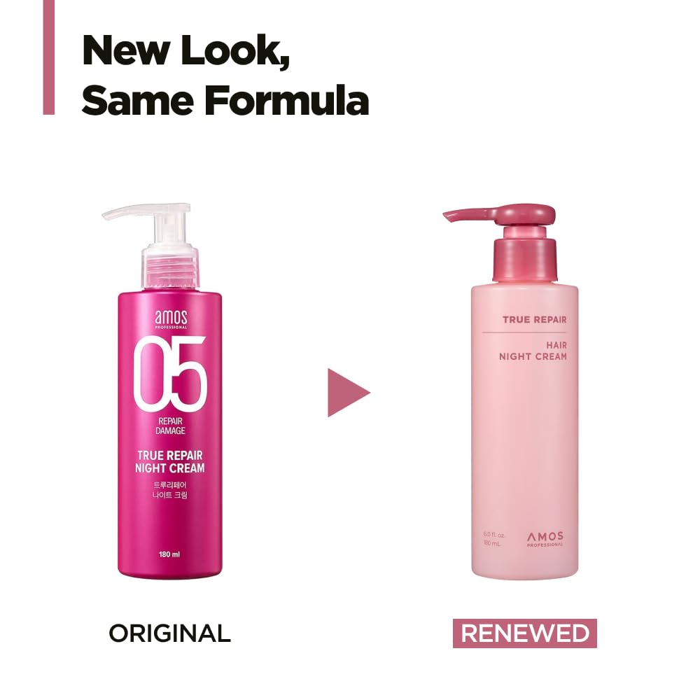 AMOS PROFESSIONAL True Repair Hair Night Cream l Overnight Hair Leave-in Conditioner, Hydrating & Deep Conditioning for Dry and Damaged Hair, 6.0 fl. oz.