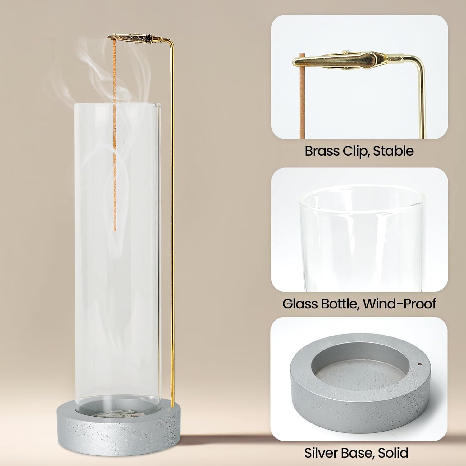 - Anti-Ash Incense Holder: Our design ensures that the incense hangs upside down in the center of the glass bottle. This not only prevents messy ash from scattering on your table but also results in less smoke, creating a more pleasant aromatic experience.