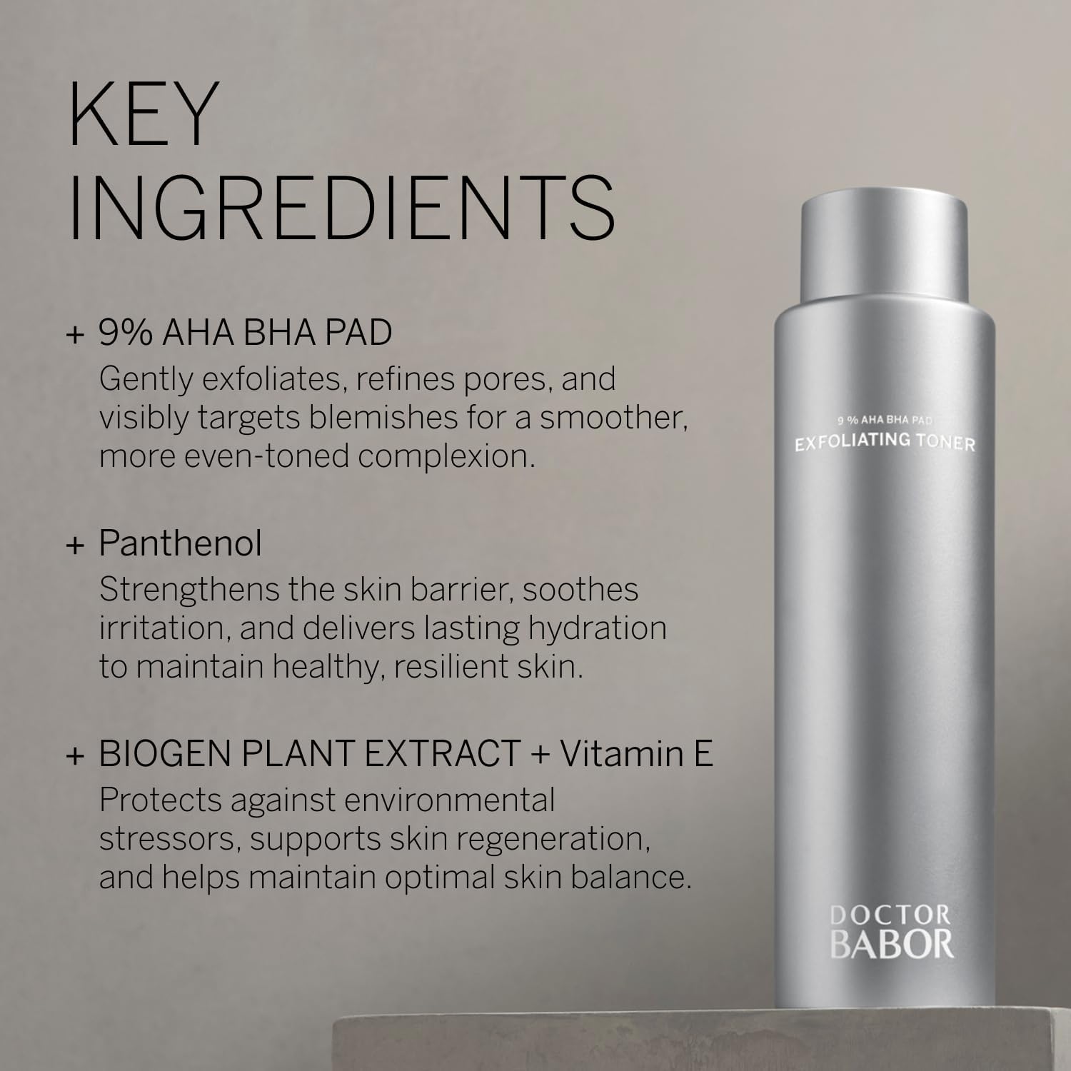 Doctor BABOR Exfoliating Toner | Facial Toner for Blemished and Oily Skin | Anti-Pimples and for Finer Pores | with AHA, BHA and PAD | 200 ml