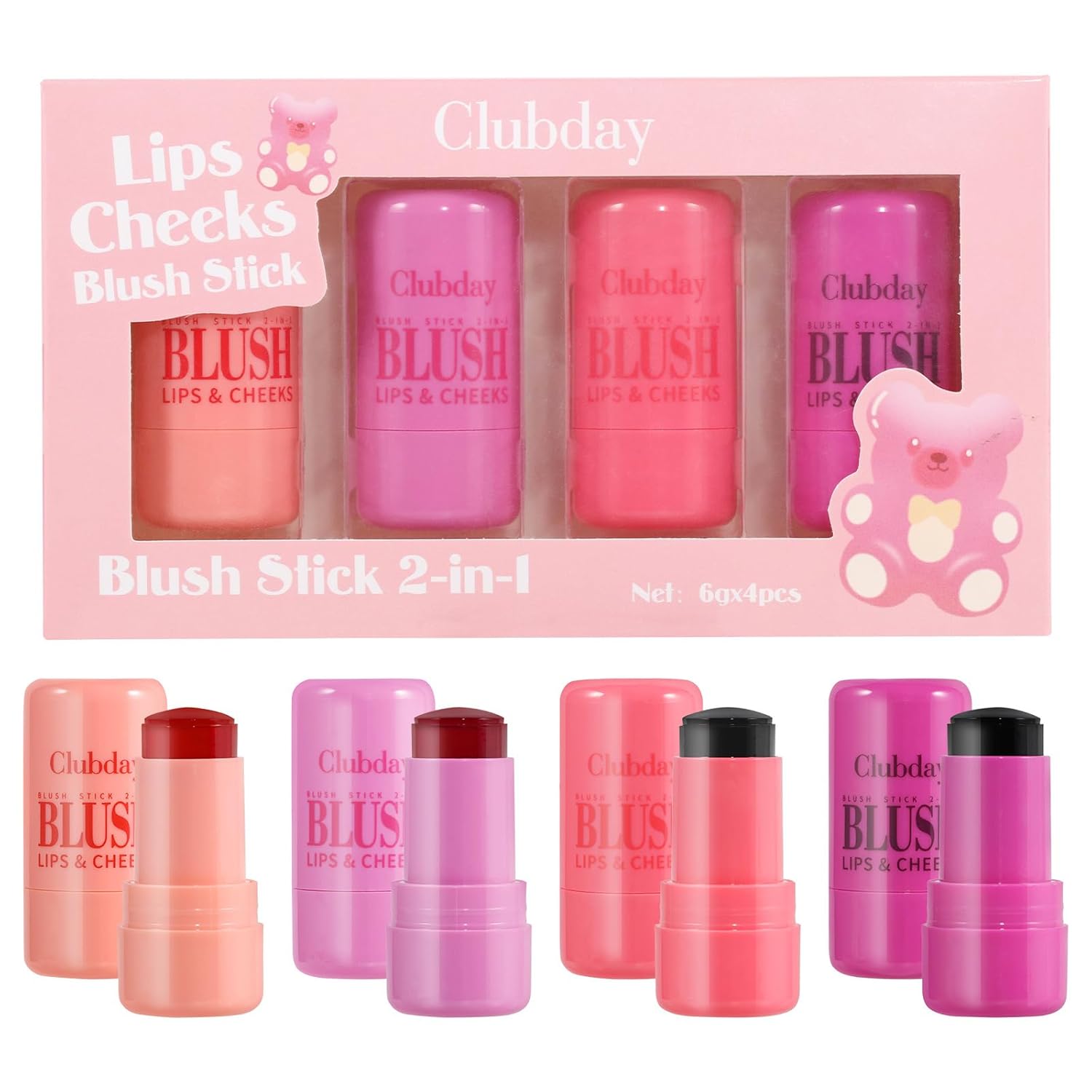 4 Color Milk Jelly Blush Stick, Cooling Water Jelly Lip Stain Cheek Stain, Vegan, Cruelty Free.