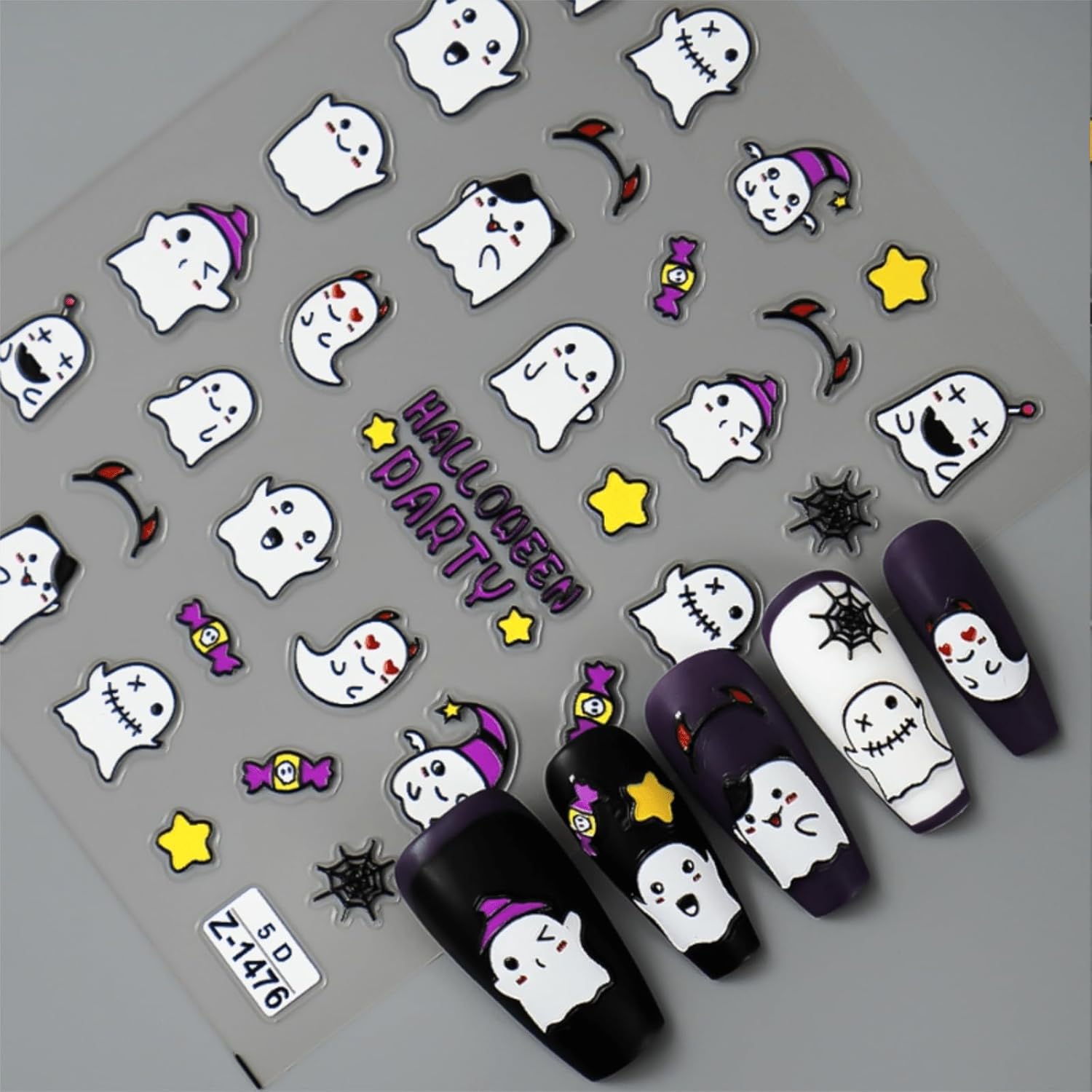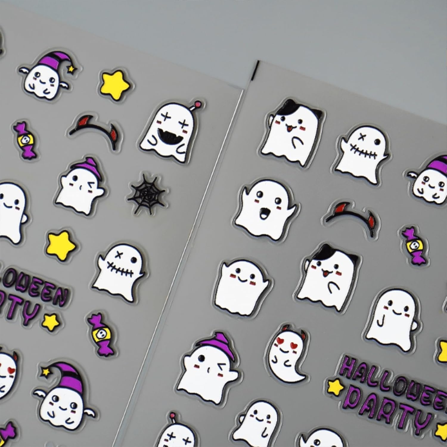 - 【Halloween Nail art Stickers】You will get 2 sheets Halloween nail stickers in one set of different cute ghost nail stickers for nail art, satisfy all your love for beautiful nails, a variety of elements for you to choose from to DIY your own nail art design.