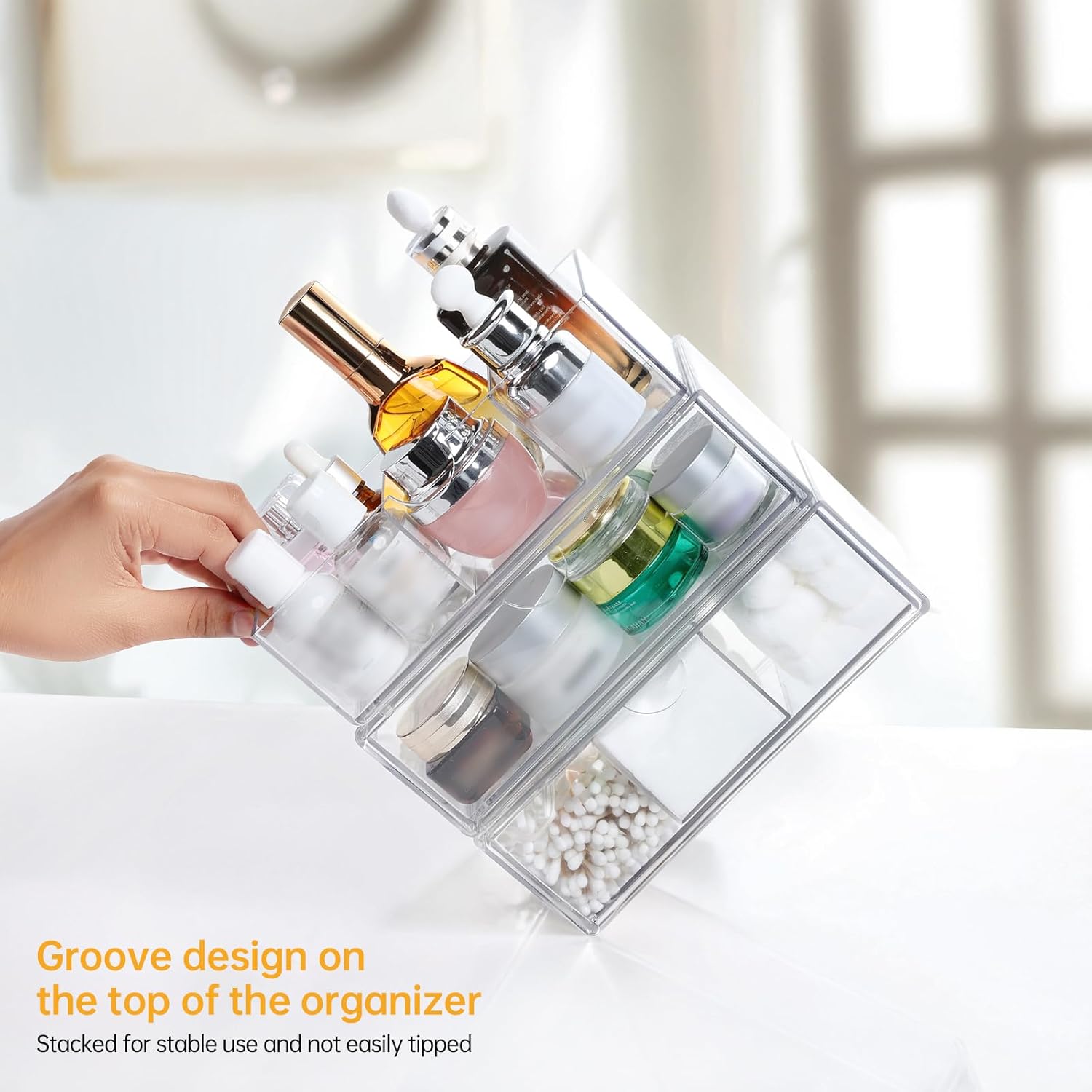 - Clever design: The stackable design of the box can reduce the space occupation and increase the storage efficiency;The drawer design is easy to access items; Anti-slip feet on the bottom to hold the box securely