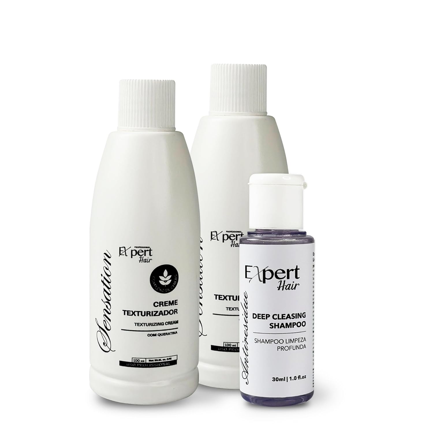 Expert Hair Sensation Keratin Hair Treatment Brazilian 100ml (2Pack) + Deep Cleansing Shampoo 30ml -Anti Frizz, Long Lasting Results-Keratina Para Alisar El Pelo, Keratina BrasileΓ±aβ Complete Set