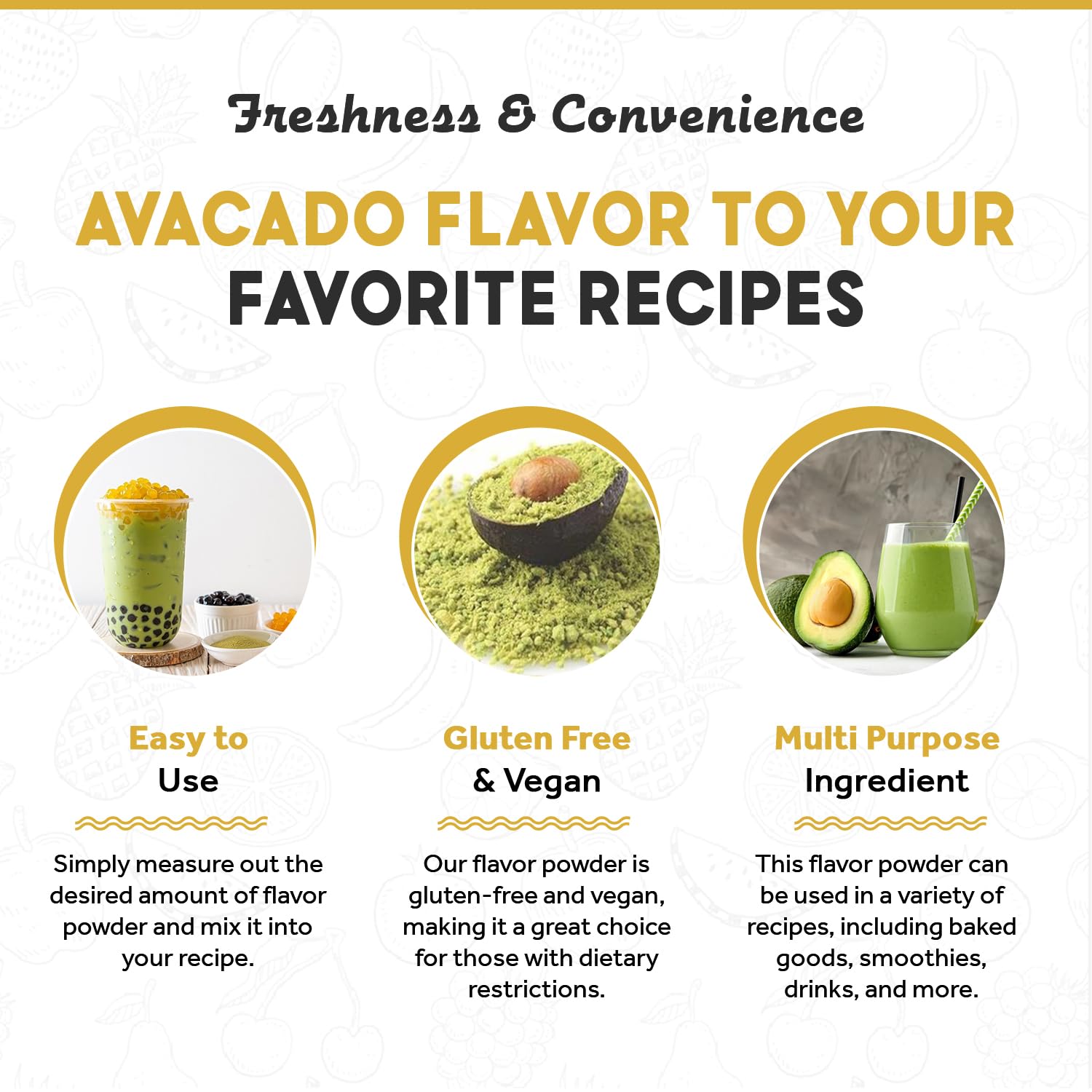 - 𝐅𝐫𝐞𝐬𝐡𝐧𝐞𝐬𝐬 & 𝐂𝐨𝐧𝐯𝐞𝐧𝐢𝐞𝐧𝐜𝐞 𝐢𝐧 𝐄𝐯𝐞𝐫𝐲 𝐔𝐬𝐞: The resealable bag that our Avocado Bubble Tea Flavoring Powder comes in makes it easy to store and use. You can keep it in your pantry or kitchen cabinet and pull it out whenever you want to add some nutty Avocado Bubble Tea Flavoring Powder to your creations.
