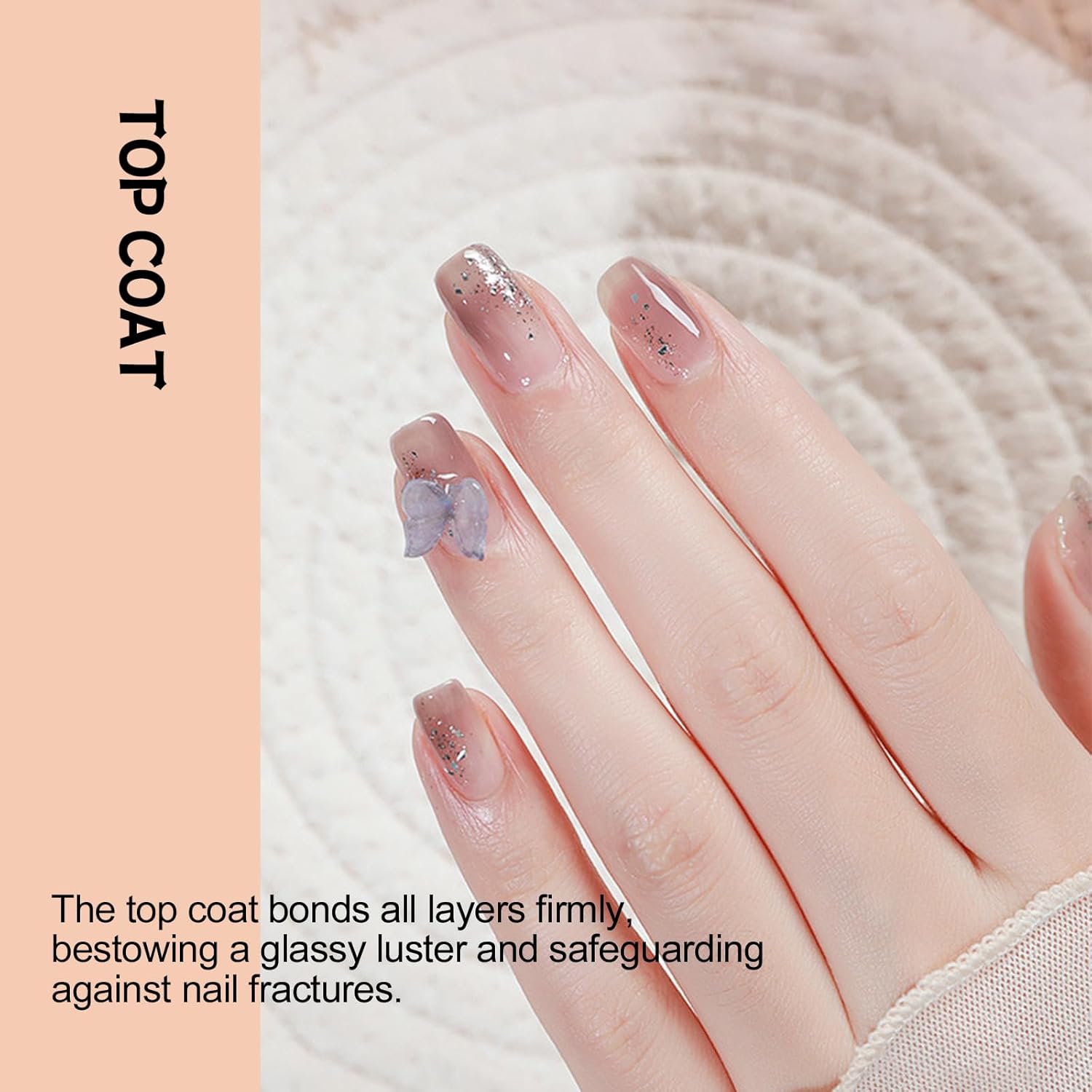 - Shiny Top Coat: You will get 15ml large capacity no wipe gel top coat. Help to protect the nail surface, keeping the gel from peeling off, and keeping the nails in a long shine finish.
