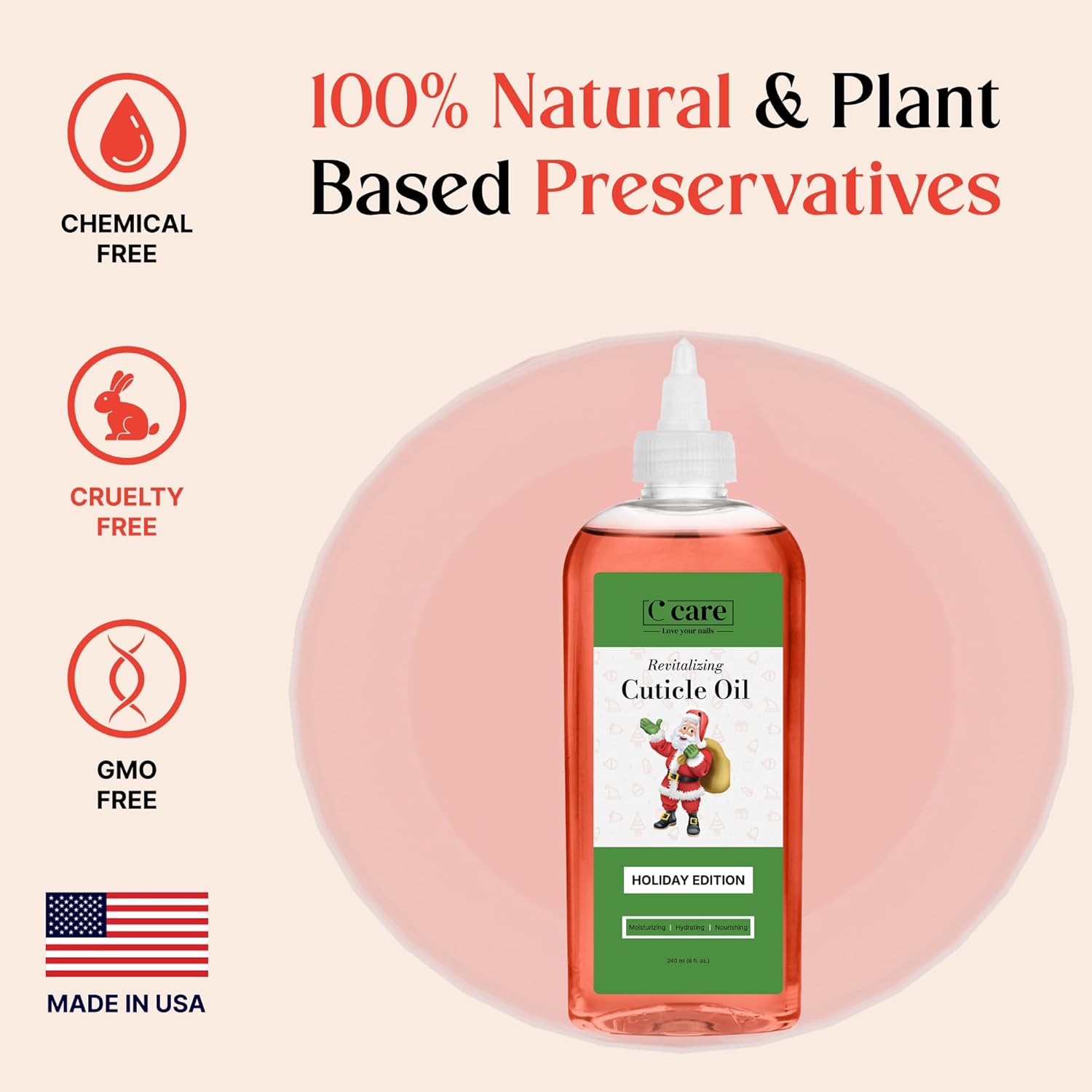C CARE Holiday Edition Cuticle Oil For Nails - Repairs Cuticles Overnight - Moisturizes and Strengthens Nails and Cuticles - Dropper & Brush included - 8oz