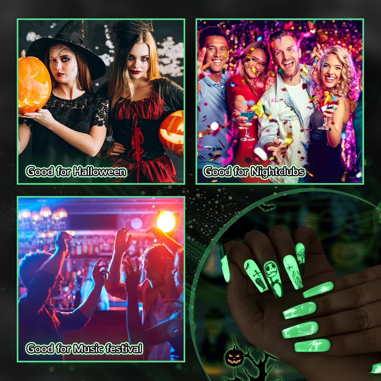- Dry Fast: This luminous nail art needs cure, you only need to wait for 60-90s under the nail lamp to dry, and get a beautiful luminous sealing layer nail art effect. Awesome glow very bright! Neon glow nail polish is suitable for the night so apply 2 thin layers will give a better brightening effect