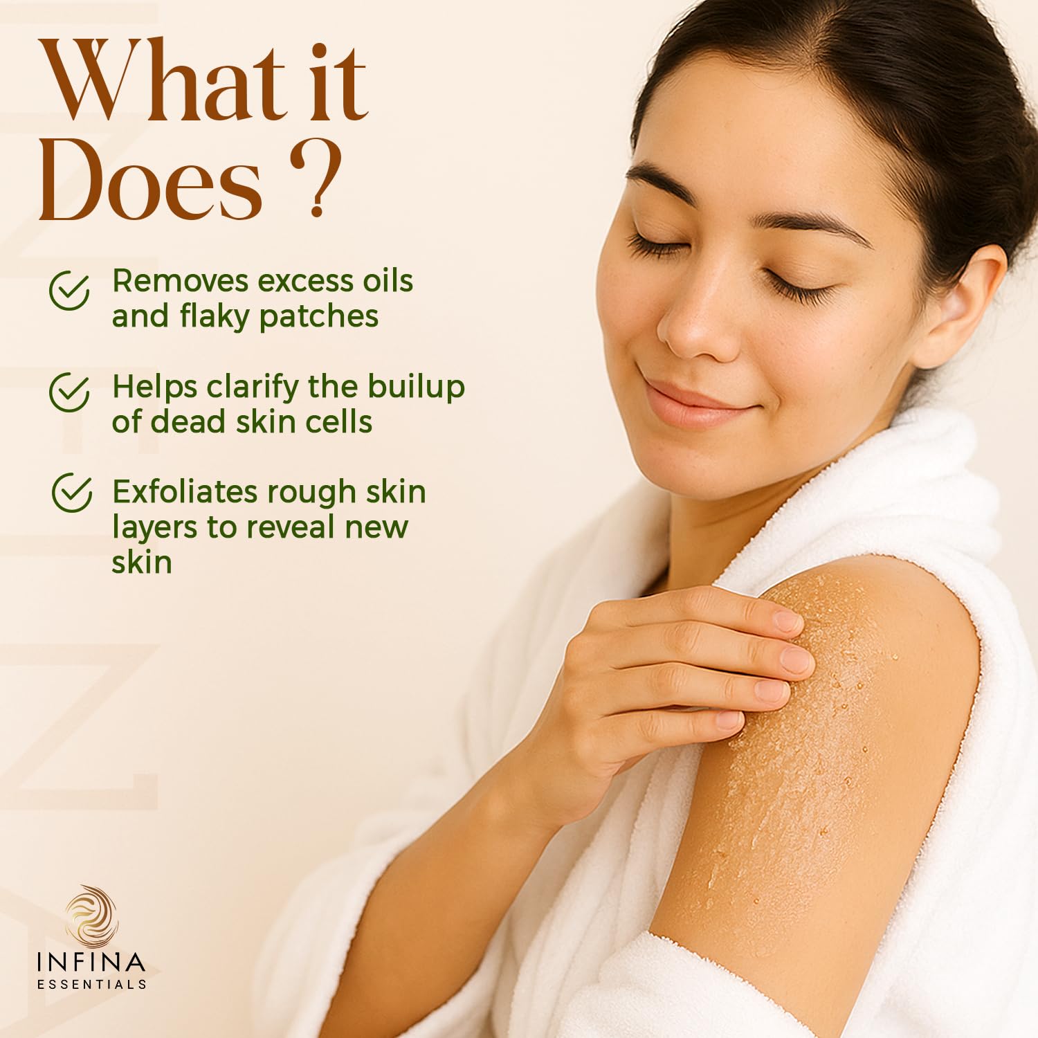 Scalp and Body Scrub – Exfoliating Sugar Cleanser with Coconut Oil, Menthol & Aloe – Dual-Use Polisher for Dry Skin & Flaky Scalp – Soothing, Cooling & Hydrating - INFINA ESSENTIALS | 8.45 fl oz
