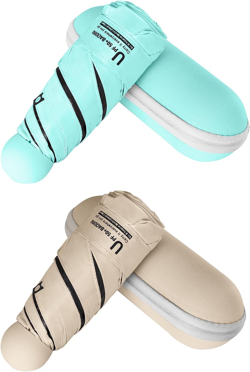 BAODINI Travel Essentials Mini Umbrella for Purse With Case Small Compact UV Sun Protection Lightweight Tiny Pocket Manual Open Close Umbrella for Women Kids and Men Fit Purse Backpack