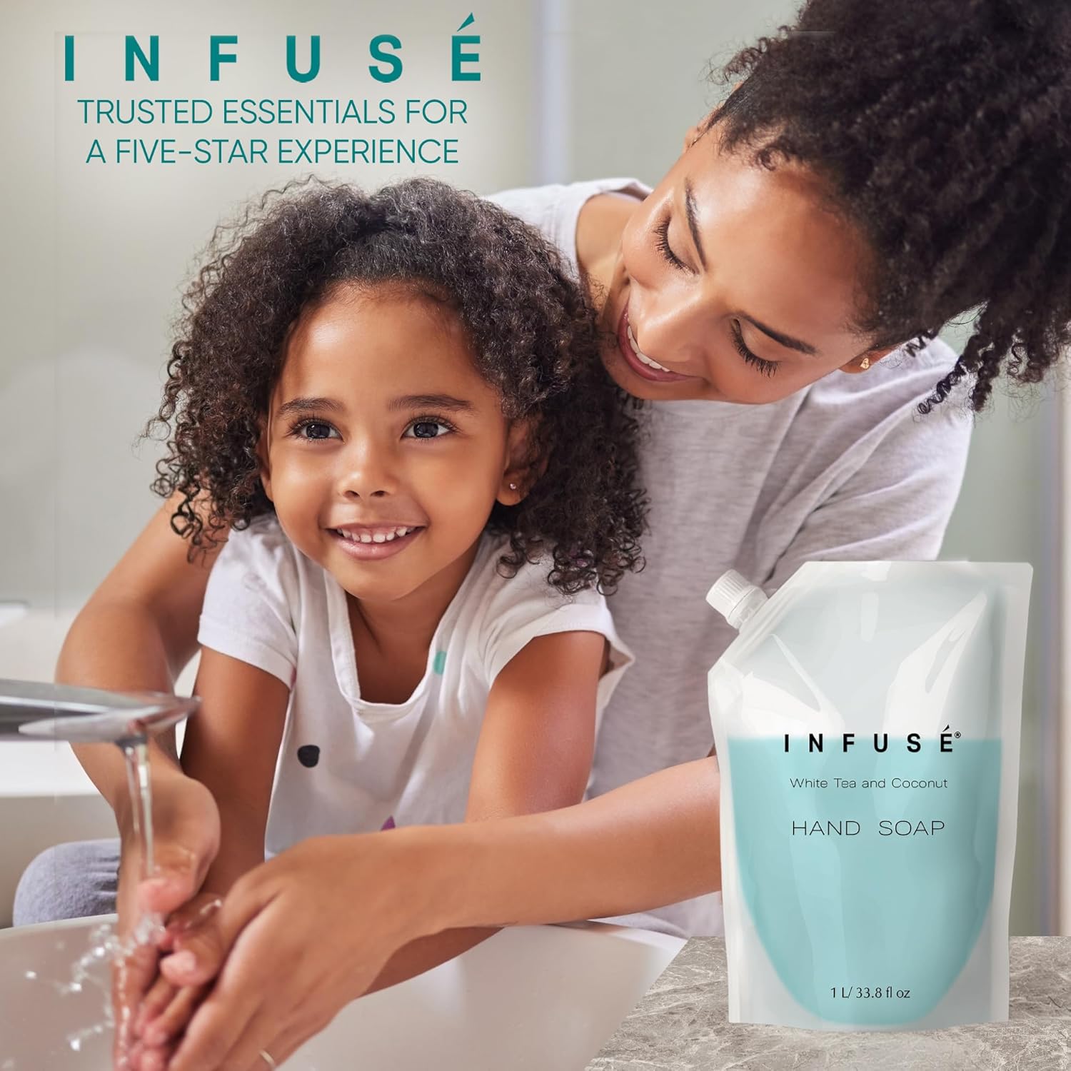 - HOTEL-QUALITY, LUXURIOUS AMENITIES: Enhance your guest experience with the Infuse White Tea and Coconut in a convenient 1-Liter Refill Bag, designed to refill wall-mounted and stand-alone dispensers. Enriched with white tea, coconut, organic aloe, and olive oil, this gentle, daily-use formula suits sensitive skin and hair. Ideal for hotels, vacation rentals, guest bathrooms, and homes, these premium amenities add sophistication and functionality to any hospitality space.