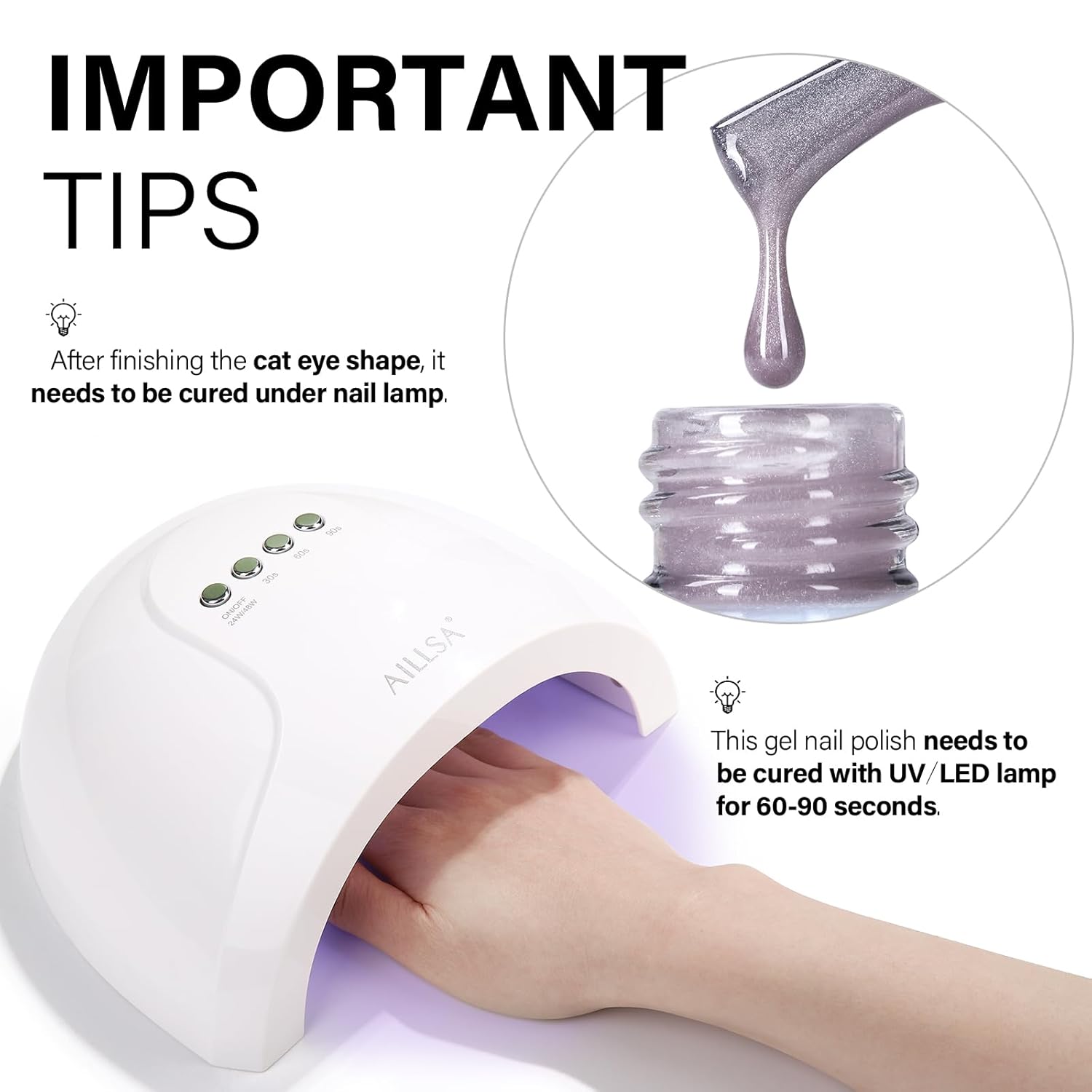 - Crystal Sparkle Effect: AILLSA cat eye gel polish creates mirror-like sparkle, crystal-clear nails, or vibrant cat-eye effects. Use it alone or pair it with any base color for stunning crystal glass nail designs featuring translucent tones and a dazzling finish.