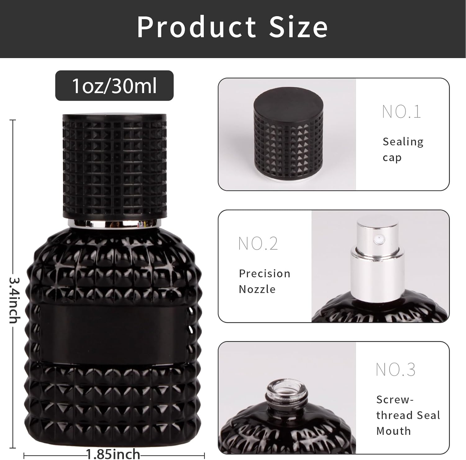 2 Pack 30ml Perfume Spray Bottles Empty, Refillable Glass Fine Mist Atomizer, Portable Travel Perfume Atomizers Fragrance Containers Sprayer for Cleaning, Essential Oils, Liquids (Black)