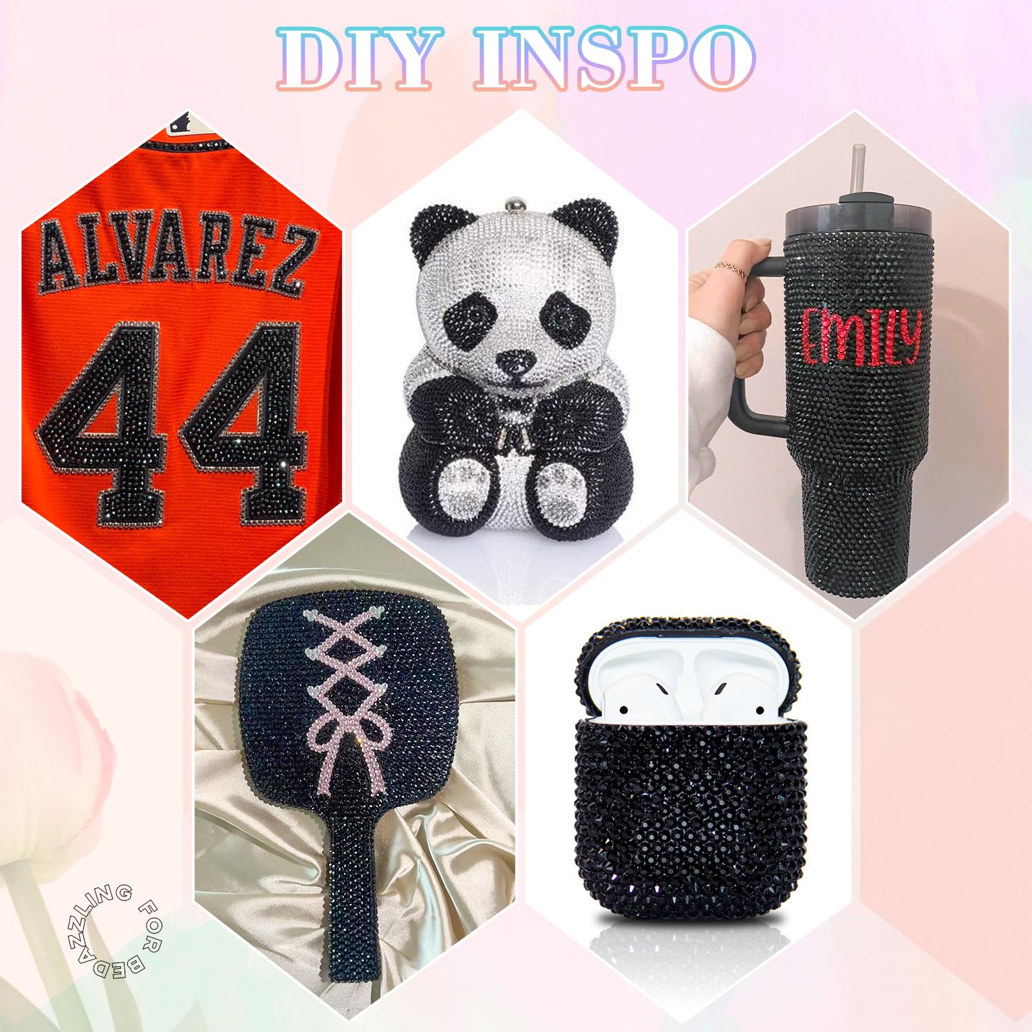 - PACKAGE CONTENT -- Include 1 box with 24 grids, featuring a variety of sizes, approx. 30000 pcs bling-out resin rhinestones (Black). 1 tweezers and 1 pickup pen are included for easily picking up of rhinestones. 3 B7000 glue for jewelry making