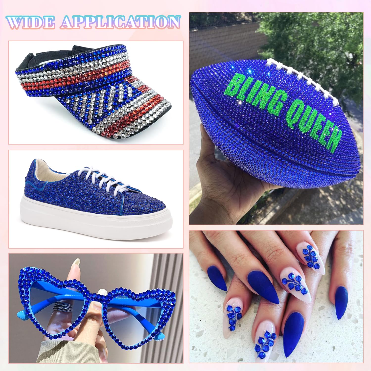 - PACKAGE CONTENT -- Include 1 box with 24 grids, featuring a variety of sizes, approx. 25000 pcs bling-out resin rhinestones (Royal Blue). 1 tweezers and 1 pickup pen are included for easily picking up of rhinestones. 3 B7000 glue for jewelry making