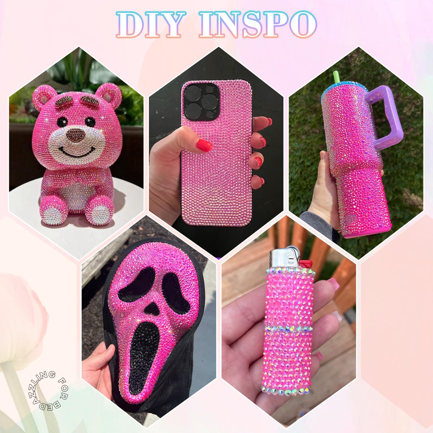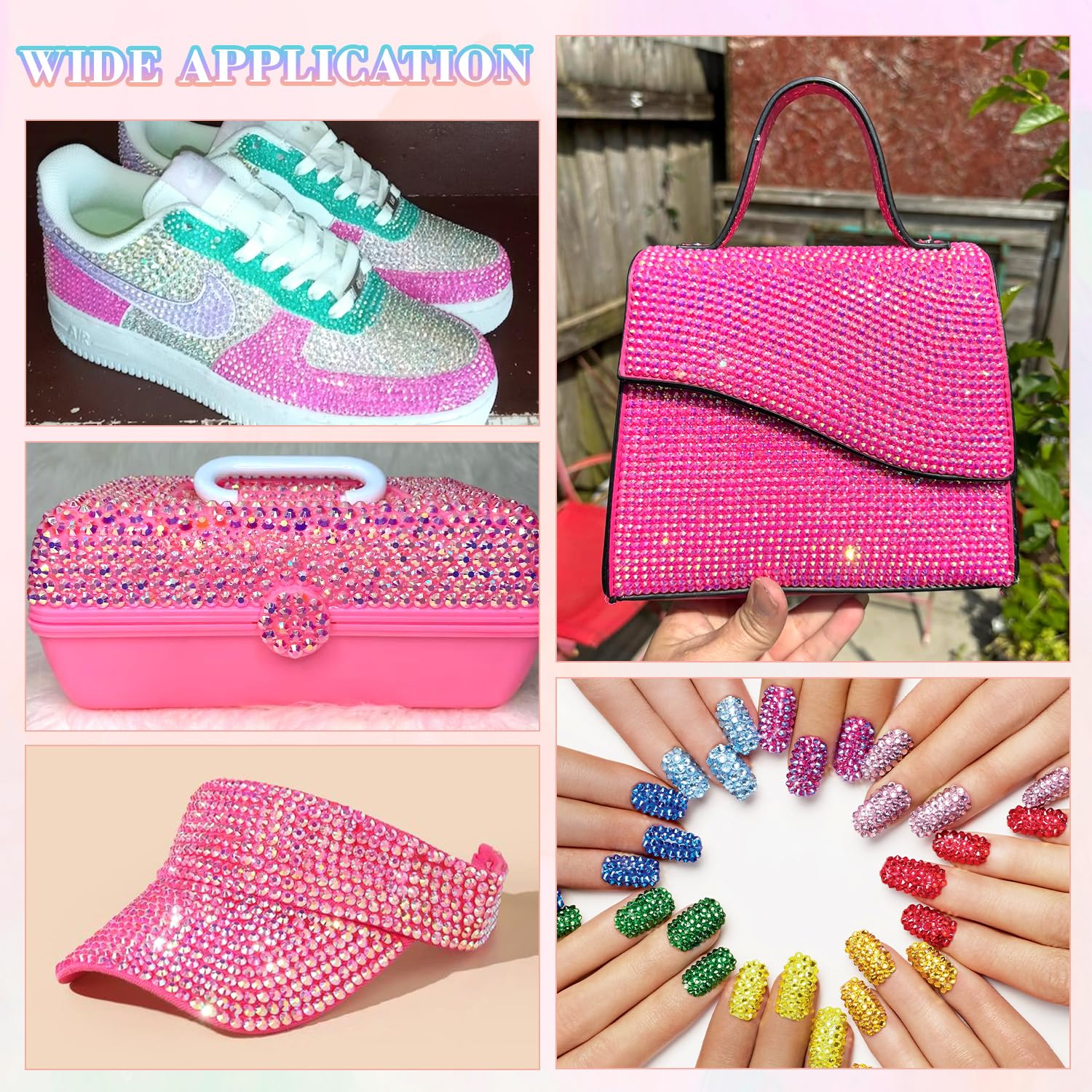 25000Pcs Resin Rhinestones with B7000 Jewelry Glue for Crafting, Hot Pink AB 2-6mm Non Hotfix Flatback Gems, Bedazzling Crystal for DIY Crafts Clothing Tumblers Mugs Shoes Fabric Decor Nail Art