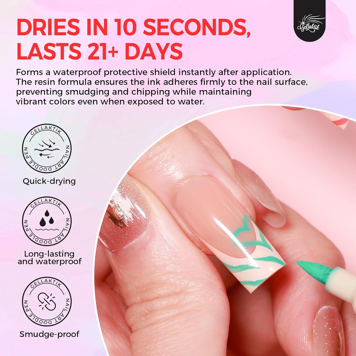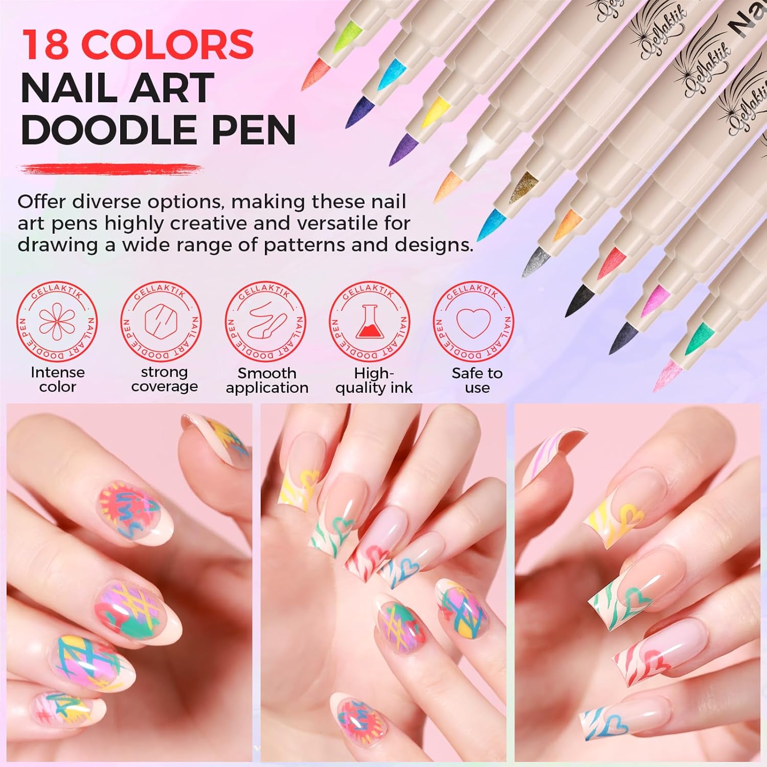 - 【Tips for Use】 Before using the Nail Art Pens shake them well and press the tip vertically several times until the ink flows. After use, immediately recap the pen to prevent the tip from drying out.