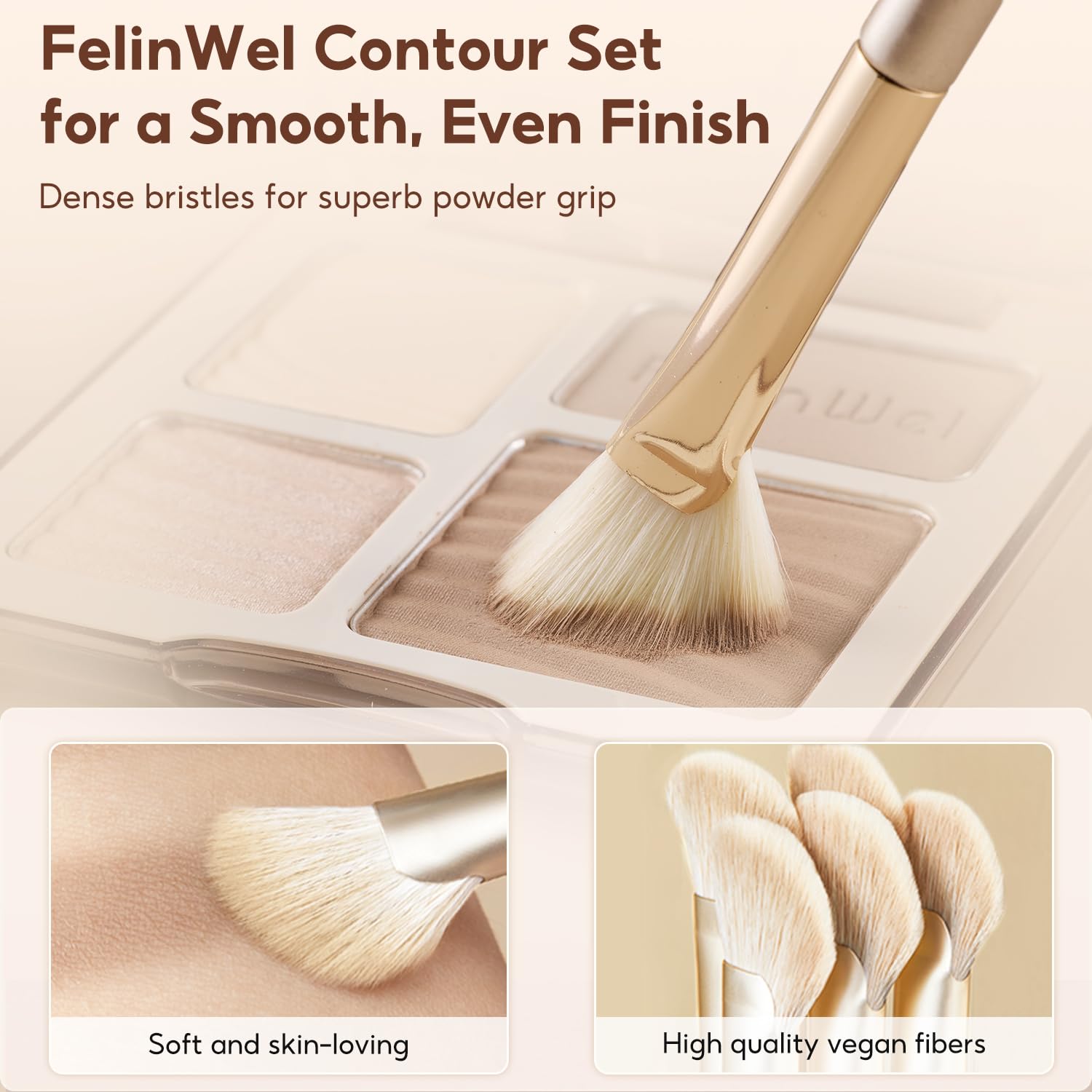 - All-in-One Palette: FelinWel contouring kit features bronzer and highlighter, along with a soft nose shadow brush, creating an alluring shine and a beautifully sculpted look. Optimal for face and nose sculpt and glow.Perfect for beginners and pros