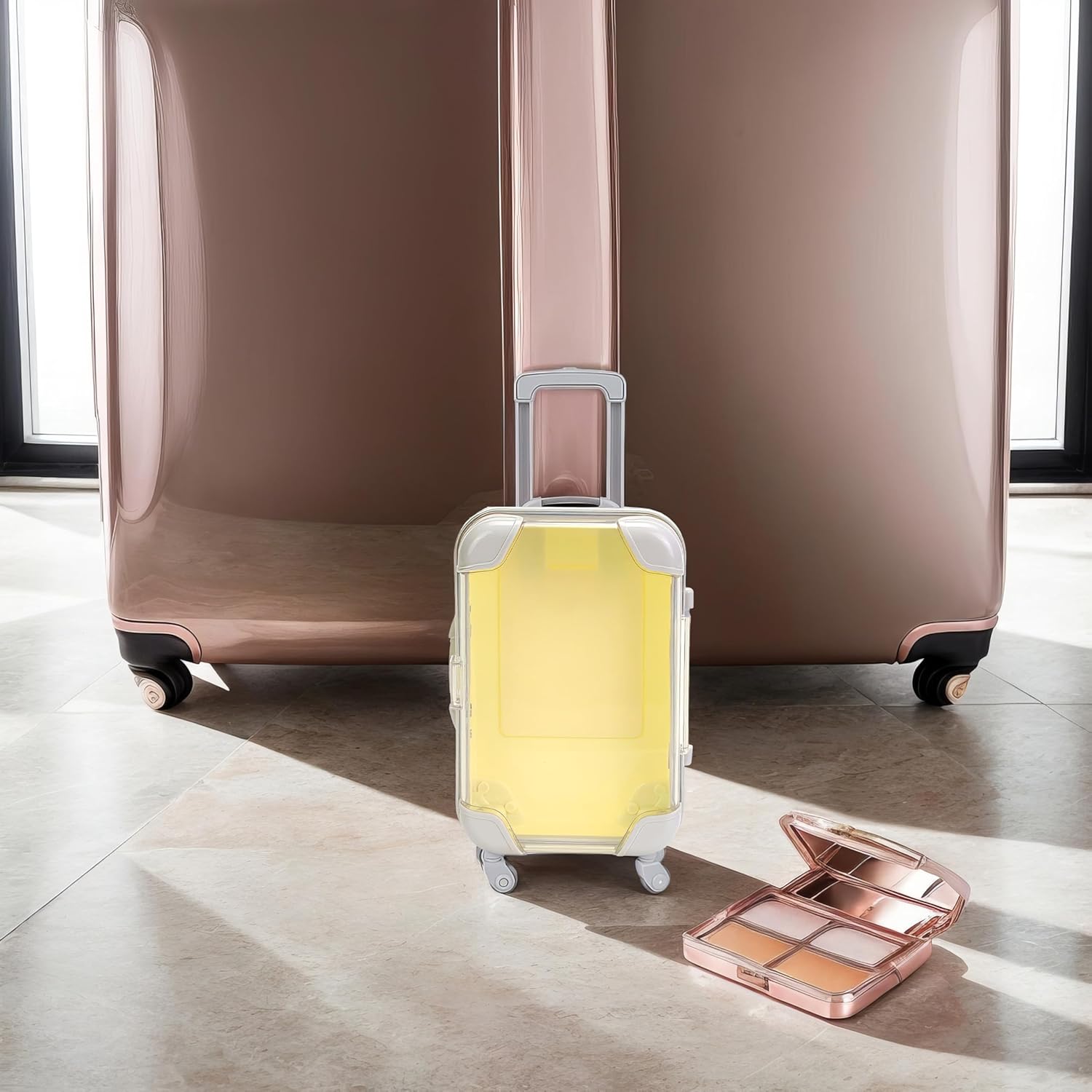 False Eyelash Storage Box, Portable Travel Organizer Mini Luggage False Eyelash Tray Makeup Tool (PALE YELLOW)