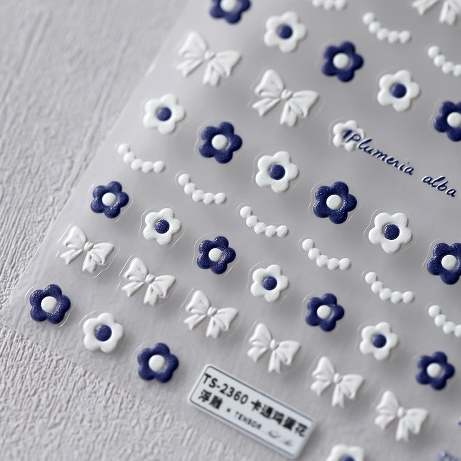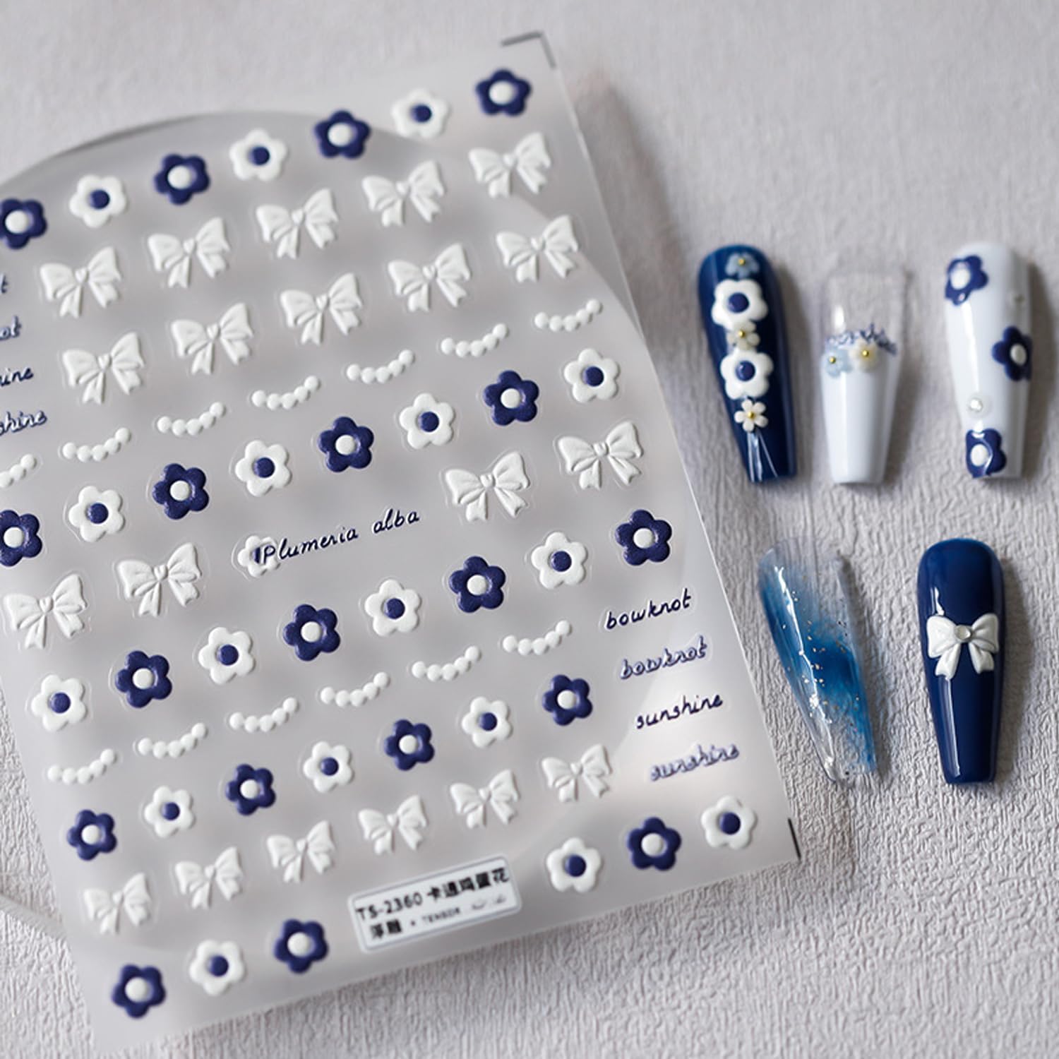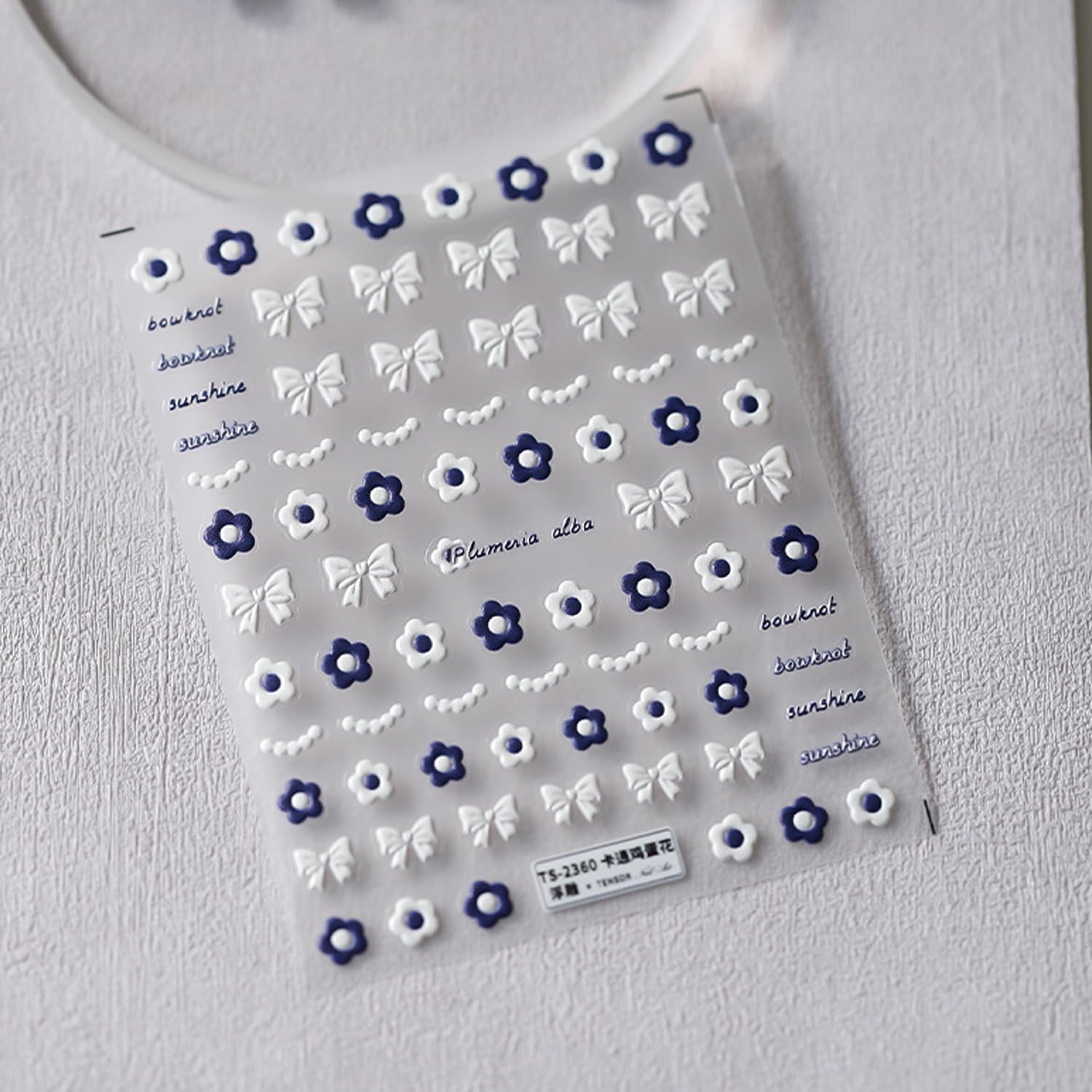 - spring summer nail stickers for nail art for women kids girls holiday cute flower nail art stickers 5D embossed nail decals design blue floral fingernail stickers calcomanĂas para uñas sticker para uñas