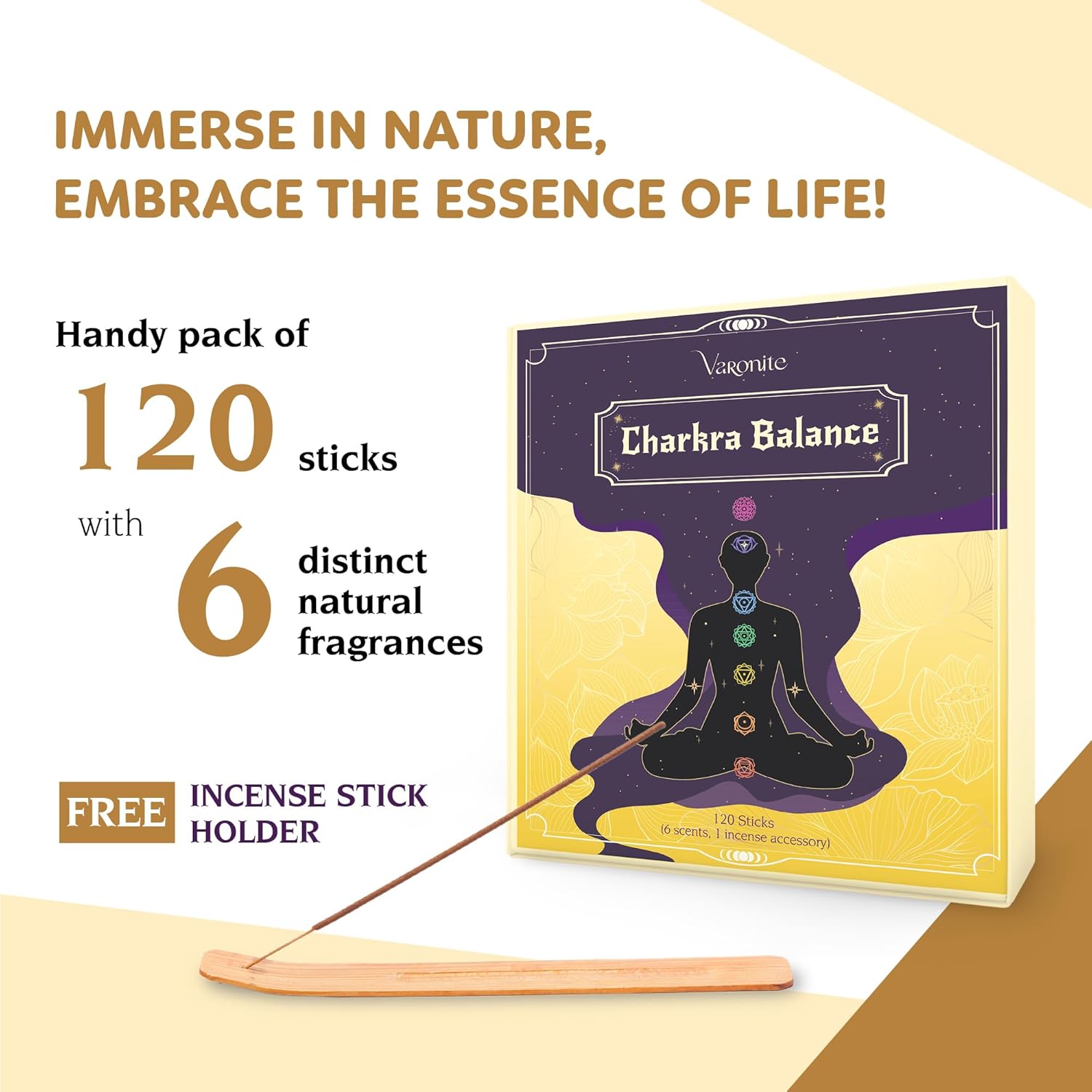 Incense Sticks - Charka Balance Incense Stick Variety Pack of 6 (120 Insence-Sticks) with Holder: Sandalwood, Bergamot, Jasmine, Lavender, Rose, Vanilla β 7 Chakras Inscents-Stick