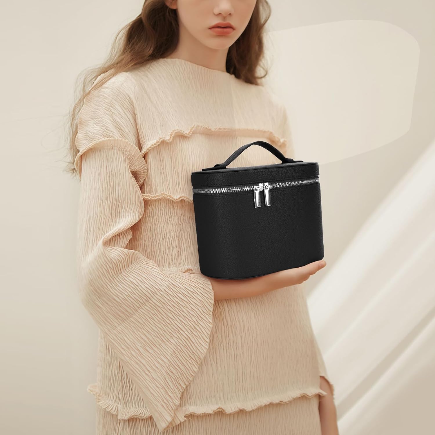 • Makeup Travel Case: The makeup organizer bag is made of PU leather, which is good in texture and durable to use, the leather surface is easy to clean.