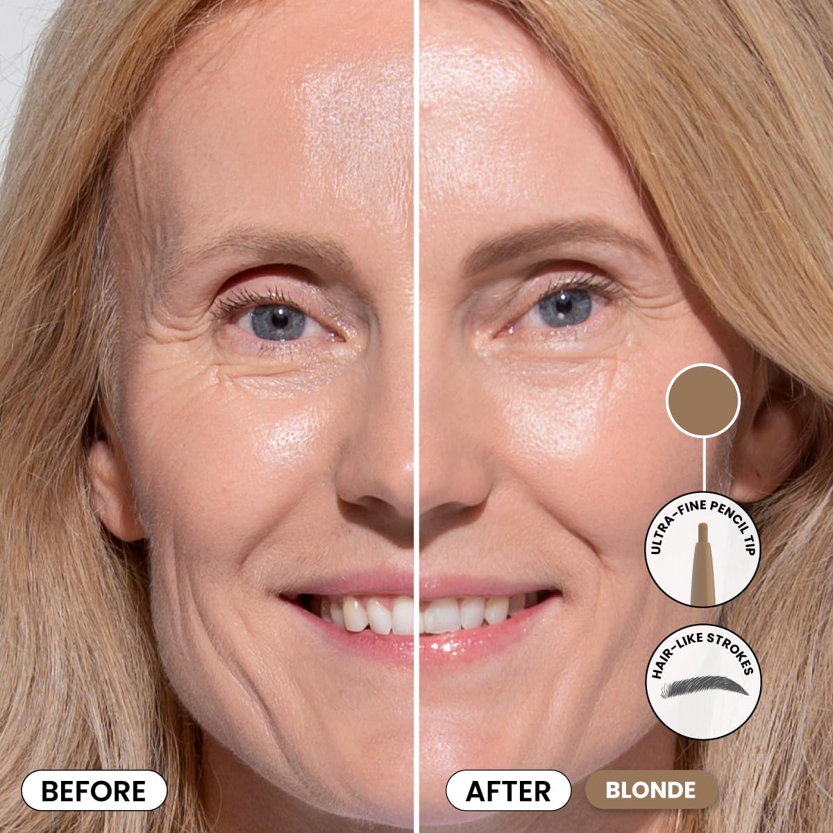 PrimeBrow Pencil for Mature Women – Ultra-Precise Tip for Natural, Hair-Like Strokes – Smudge-Proof & Long-Lasting Wear – Great for Thinning, Sparse, or Graying Brows (Blonde)