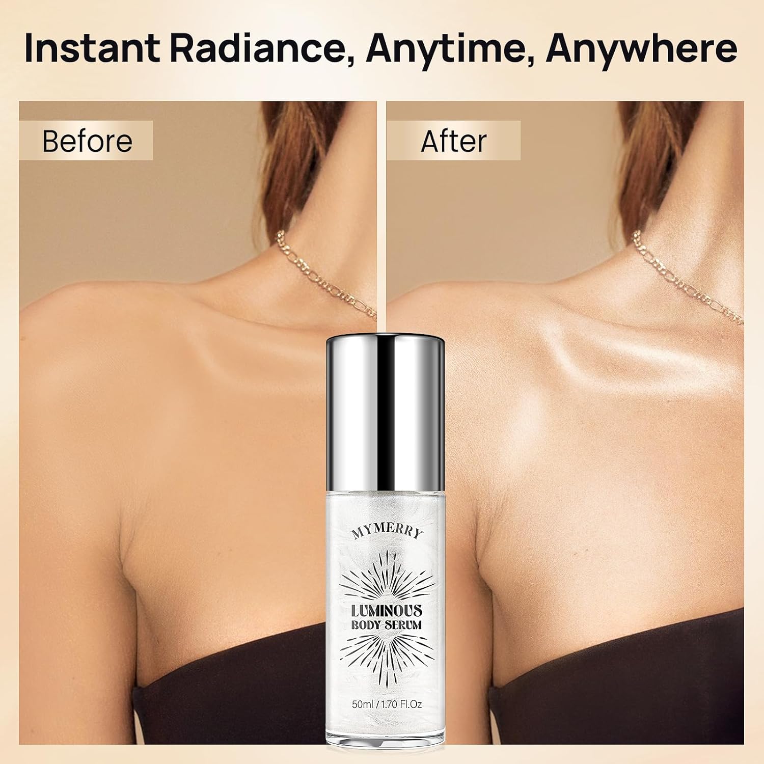 - ✨ RADIANT GLOW ALL DAY: MYMERRY body shimmer oil achieving a sun-kissed radiance anytime. This lightweight formula delivers a soft shimmer under natural light, enhancing your skin's beauty. With continued use, it helps brighten and even out skin tone for a more luminous, healthy look.
