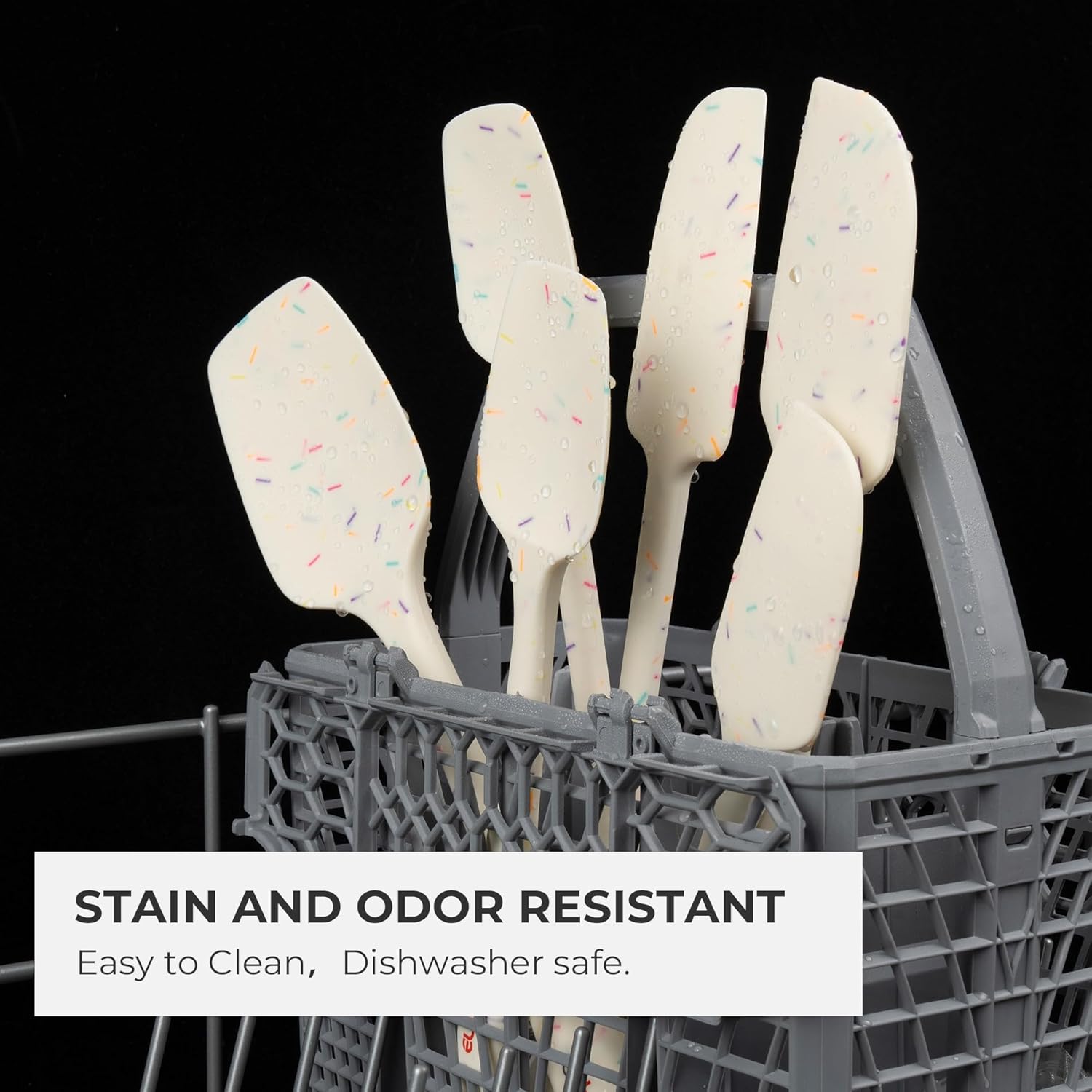 Elihome Skinny Silicone Spoonula - Non-Stick Heat Resistant Silicone Scraper Spatula for Mixing, Serving, Scraping, Stirring, and More - 11 Inch, Sprinkles