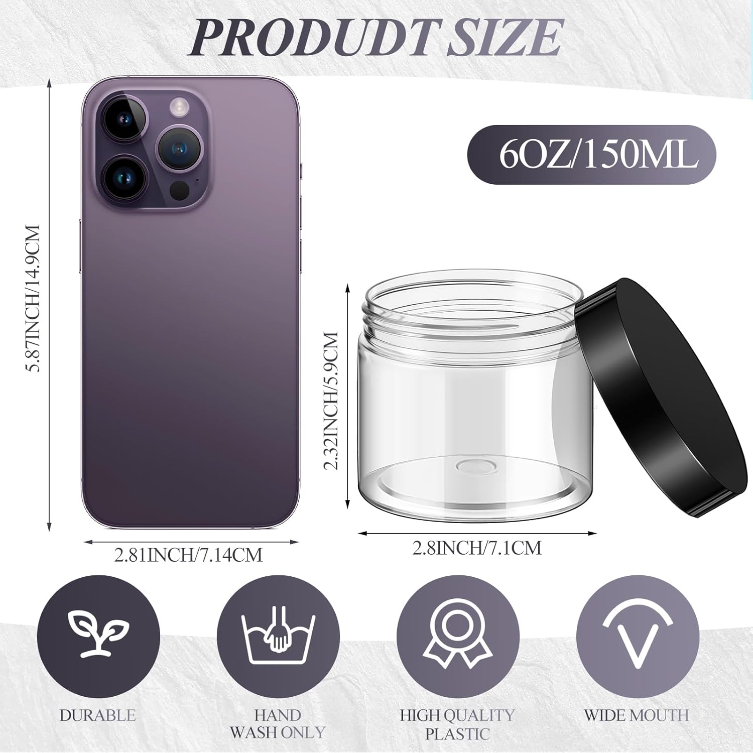 SATINIOR 36 Pieces 6 oz Plastic Jars with Lids Wide Mouth Airtight Reusable Container Acrylic Cosmetic Small Jars for Lotions Ointments Travel Toiletries Creams Make up Storage(Black)