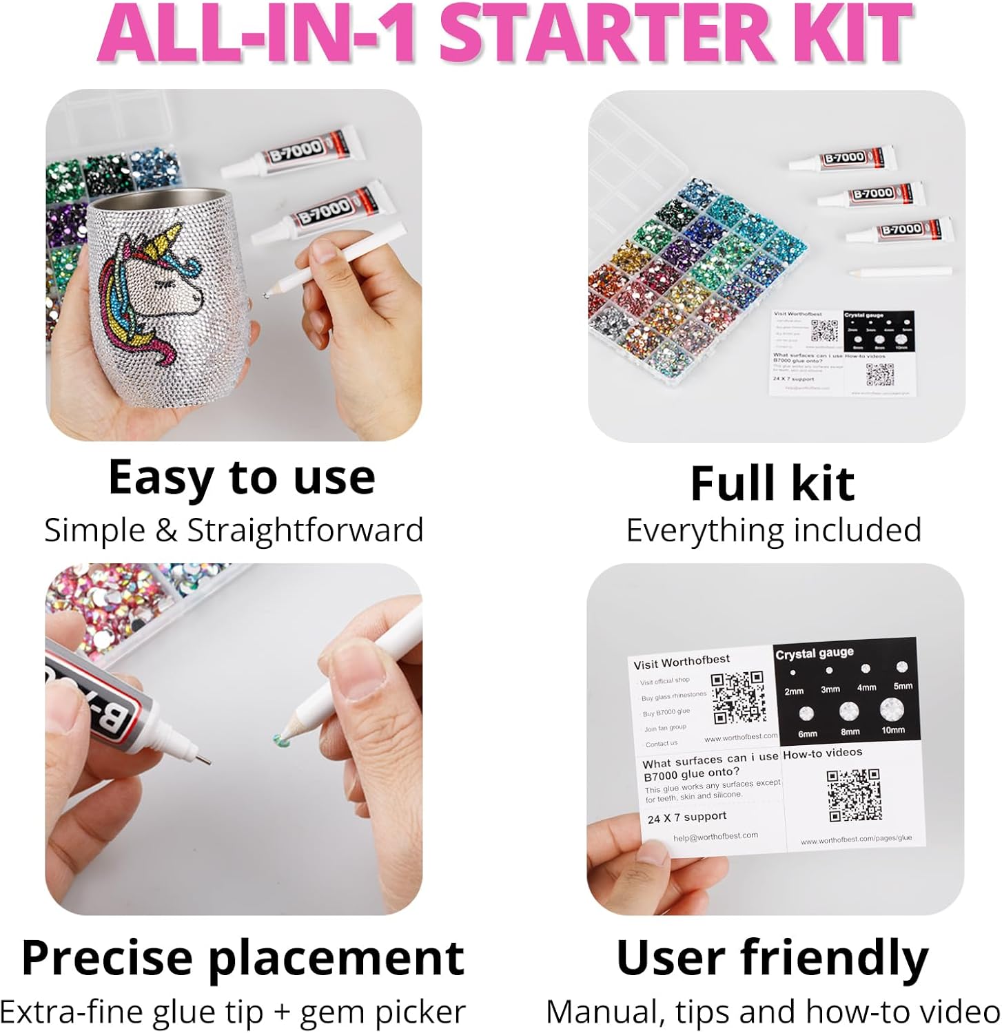 - Easy to Use -- This kit is designed to be straightforward, and versatile for various crafting projects. The manual is user-friendly and beneficial for both novice and experienced crafters. The complete and durable tools are suitable for precisely applying rhinestones to create intricate designs, with no additional tools required. Rhinestones are easy to apply and remove. The sturdy container with 12 grids keeps all rhinestones organized by size and color, making them easy to store and access