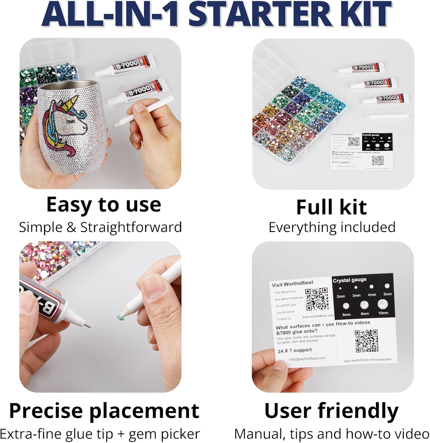 - Easy to Use -- This kit is designed to be straightforward, and versatile for various crafting projects. The manual is user-friendly and beneficial for both novice and experienced crafters. The complete and durable tools are suitable for precisely applying rhinestones to create intricate designs, with no additional tools required. Rhinestones are easy to apply and remove. The sturdy container with 12 grids keeps all rhinestones organized by size and color, making them easy to store and access