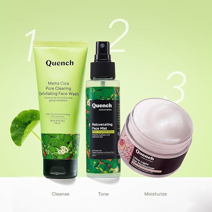 - ABOUT QUENCH : - We believe that beauty comes from within. So, we’ve taken Korean skincare and specially crafted it to work for Indian skin. Skincare is supposed to make you feel good and look good, and with our 100% vegetarian, most luscious, skin-rejuvenating formulas, it does just that.