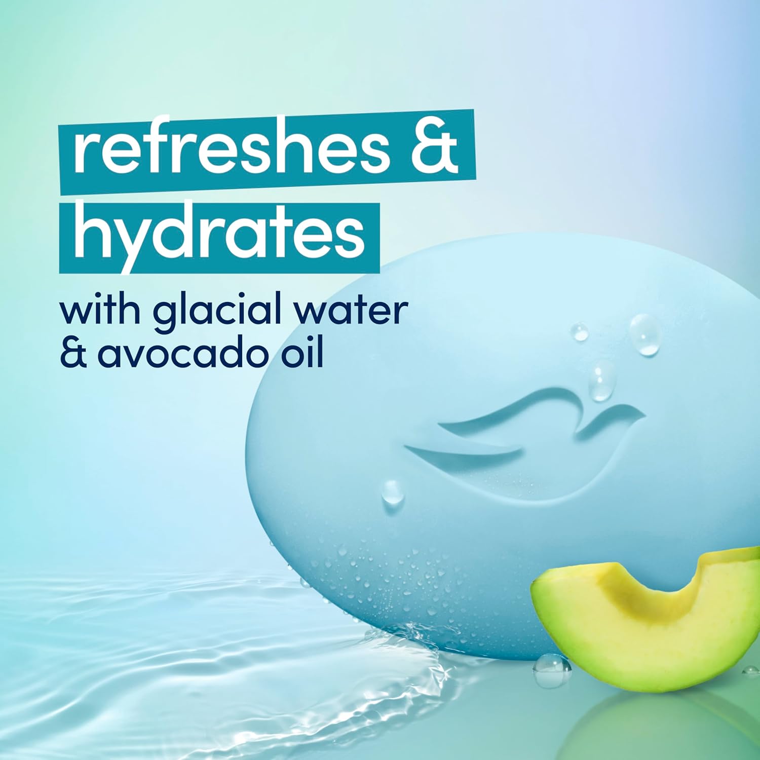 - DRENCH YOUR SKIN: Fresh notes of glacial water & avocado oil. Dove Hydrating Beauty Bar refreshes and cares for your skin for a renewed look & feel