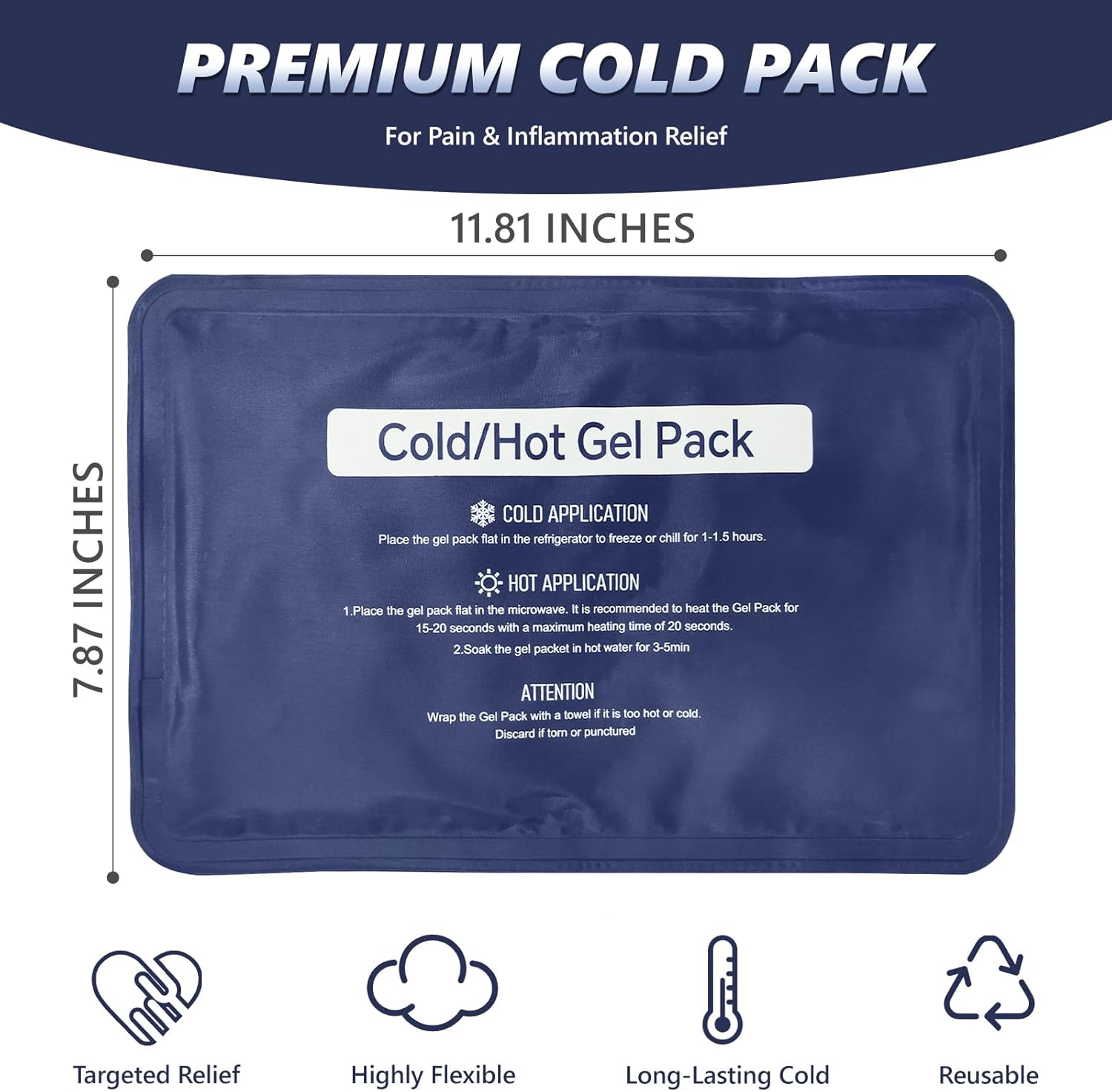 Reusable Gel Soft Ice Packs for Injuries, Flexible Hot and Cold Packs for Knees, Back, Face, Joint & Muscle Pain Relief (Medium 7.87"x 11.81")