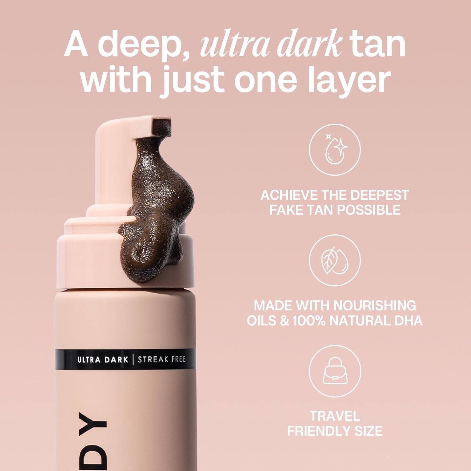 - 𝗦𝗲𝗹𝗳-𝗧𝗮𝗻𝗻𝗲𝗿 𝗨𝗹𝘁𝗿𝗮 𝗗𝗮𝗿𝗸, 𝗡𝗮𝘁𝘂𝗿𝗮𝗹-𝗟𝗼𝗼𝗸𝗶𝗻𝗴 𝗧𝗮𝗻: Transform your skin with our deepest, most natural-looking Self Tan . This lightweight Ultra Dark mousse delivers a flawless bronzed glow with Fake Tan color technology that eliminates orange tones. Perfect for special events or year-round confidence, our tinted formula with Color Guide Technology ensures even application with no streaking.