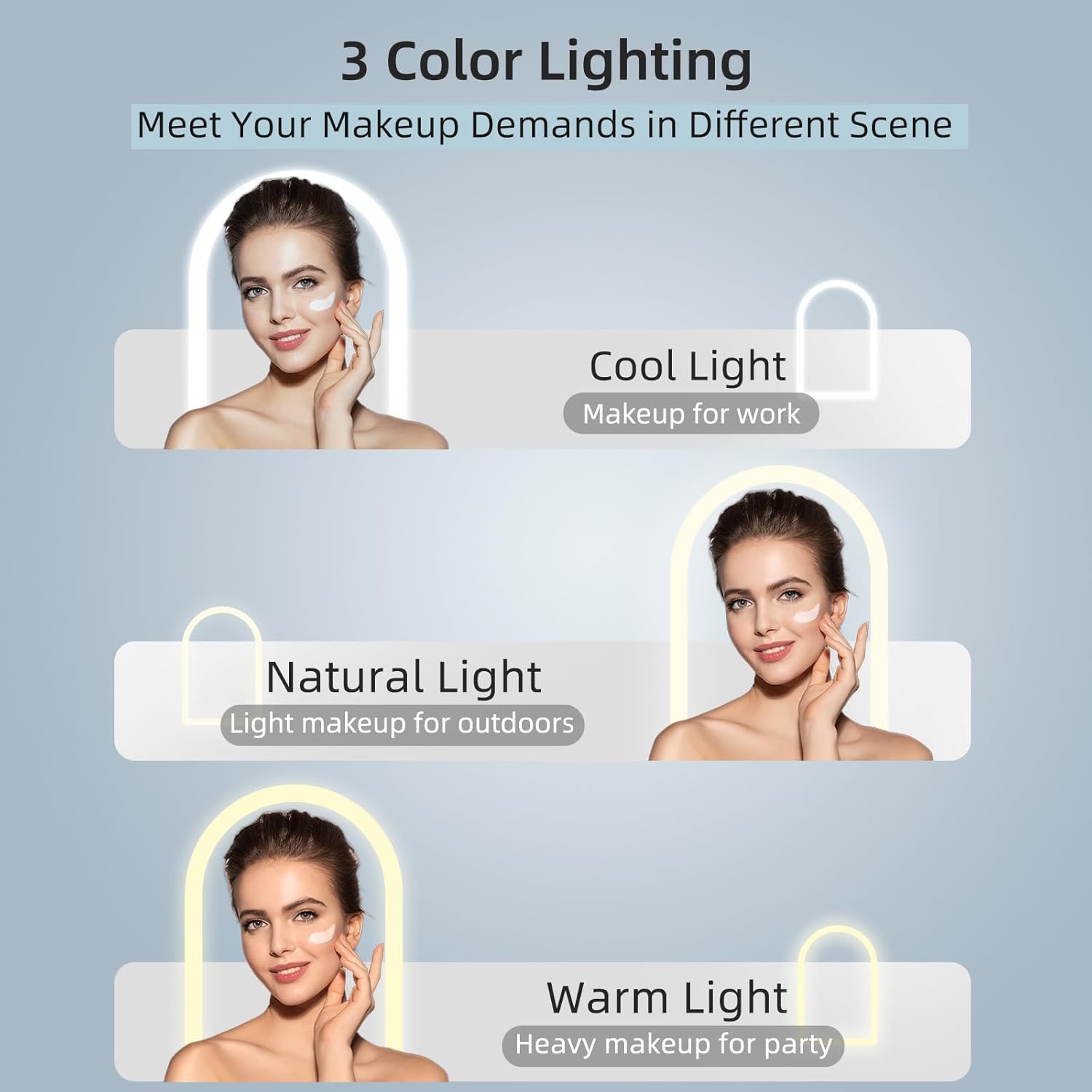 - 3 Color Lighting and Dimmable Touch Screen:This lighted travel makeup mirror, offers white lights, warm lights and cool lights. Easily short press for color temp between a warm glow to white glow.Longer press the high-sensitivity touch button can brighten or darken the mirror between 100%, 50% and 10% brightness,just use it at your ease