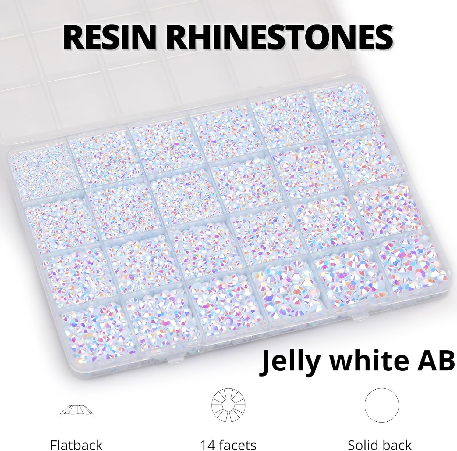 30000Pcs Resin Jelly Rhinestones Set for Crafting Bedazzling, White ab Flatback Gems Jewels for Crafts Clothes Shoes Fabric Outfit Nails Makeup, Flat Back Crystal 2-6mm with b 7000 Glue