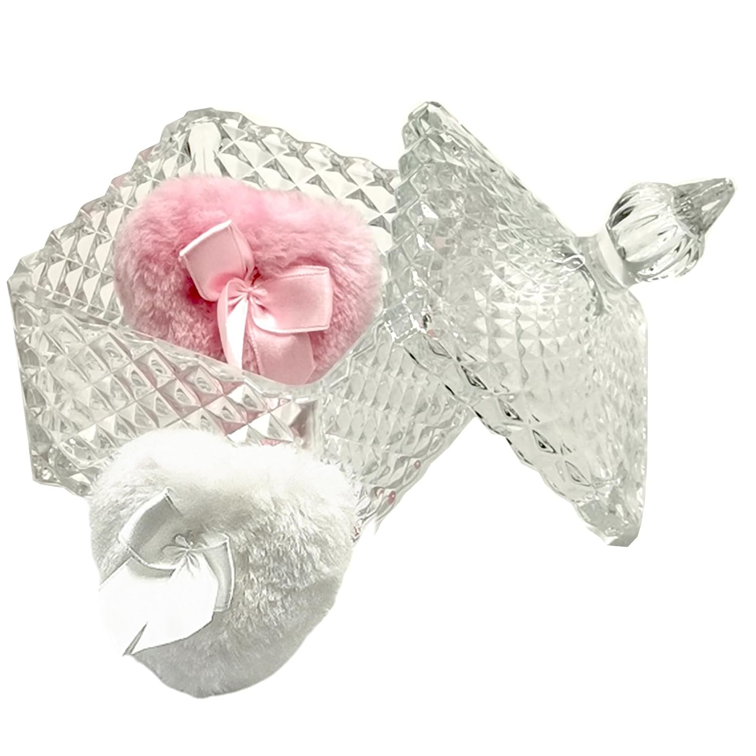 - 【You Will Get】 1 x Pink Glass Powder Puff Box with Reusable One White Puff and One Pink Puff. Transparent glass material with heart shape design, both aesthetics and ritual, suitable for gifts or makeup table decorations. The puff is soft and reusable, wet and dry use