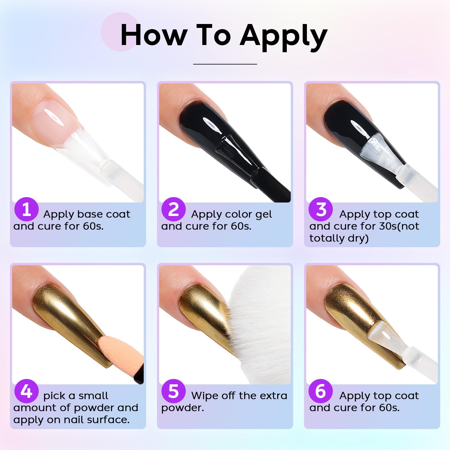 - Wide Application: AIMEILI metallic chrome nail powder is suitable for applying on U V gel nails, acrylic nails, natural nails, etc. Different polish will give different actual effects. And, it is a good solution with rhinestones, nail art fimo or other accessories to build a nice nail art.