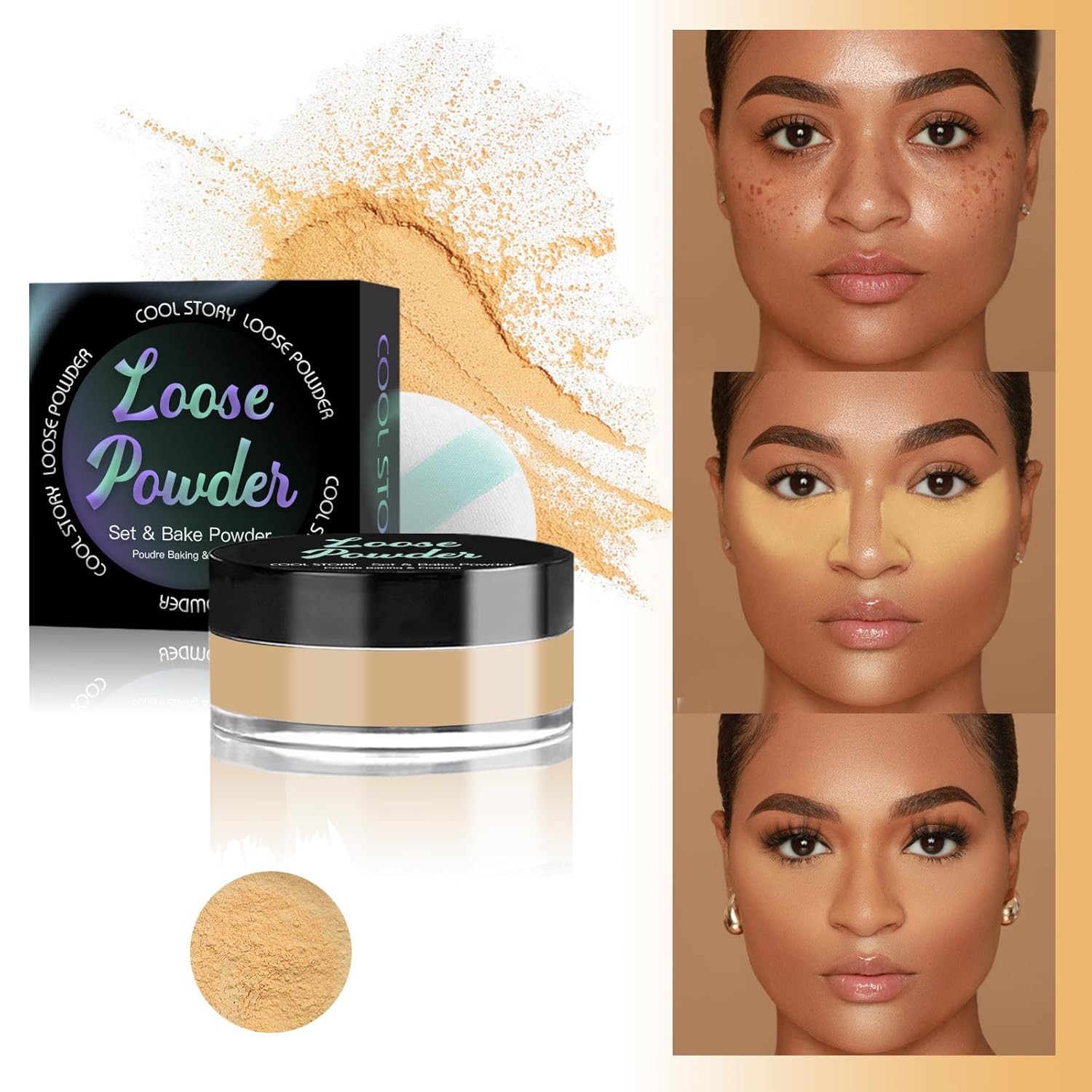 Loose Setting Powder, Bake Makeup Powder Full Coverage Matte Finish (Honey Beige, 6g/O.21oz)