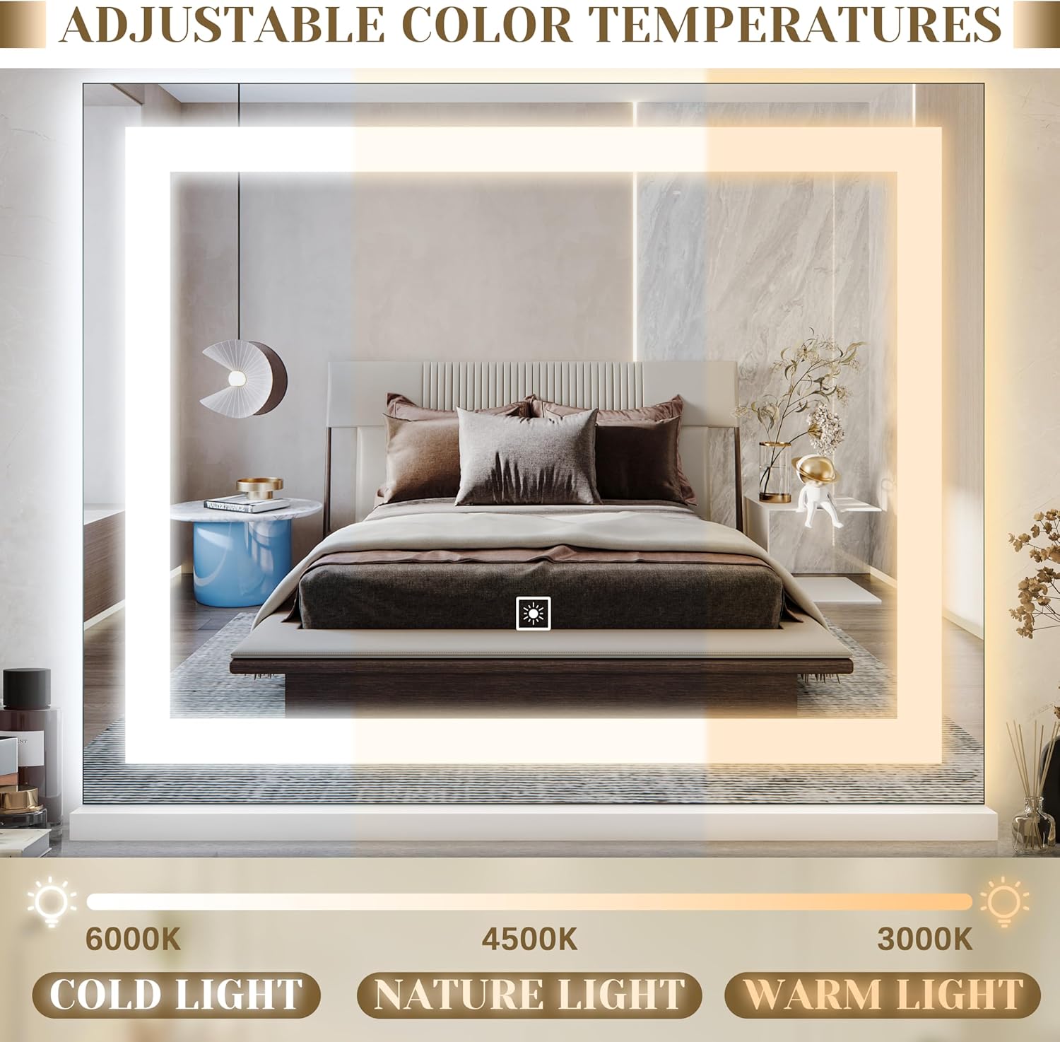 - 【3 Light Modes & Smart Dimming】 Switch between warm light, natural daylight, and cool white light to match any scenario—morning routines, evening events, or studio-style makeup. Adjust brightness with a simple touch to achieve flawless lighting for every look. Whether you're contouring, applying eyeliner, or checking skincare, the dimmable feature ensures optimal visibility.