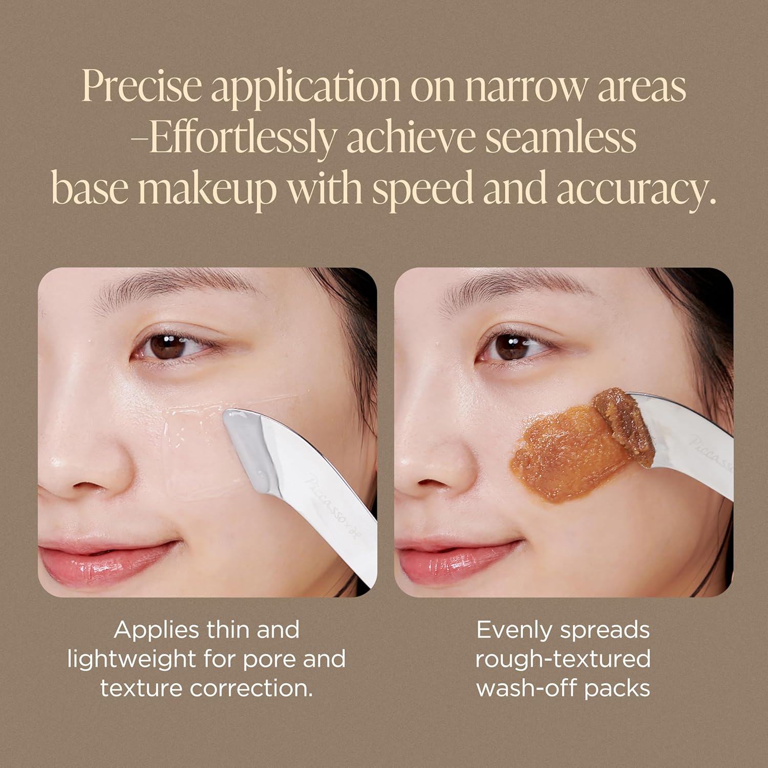 Piccasso 2-Way Makeup Spatula – Professional Foundation & Skin Care Spatula for Face, Dual-Ended Stainless Steel Tool for Precise and Hygienic Application, Includes Leather Case