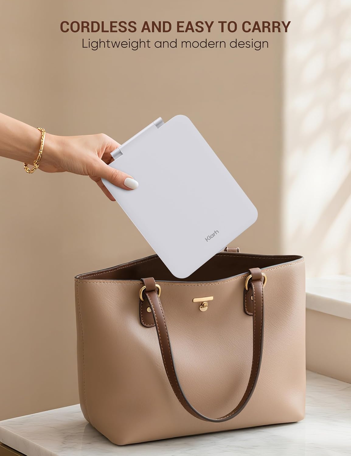 - 【Portable Travel Mirror & Lightweight and Portable】 The mirror itself weighs only 1.0 lbs, size: 8.5*6.4 inches, can be easily put into a bag or stored in a suitcase. It can be used for makeup application and touch-ups, suitable for commuting and 2-3 days business trips.