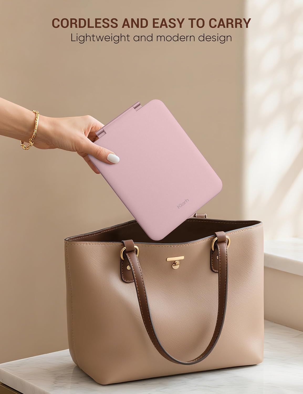 - 【Portable Travel Mirror & Lightweight and Portable】 The mirror itself weighs only 1.0 lbs, size: 8.5*6.4 inches, can be easily put into a bag or stored in a suitcase. It can be used for makeup application and touch-ups, suitable for commuting and 2-3 days business trips.