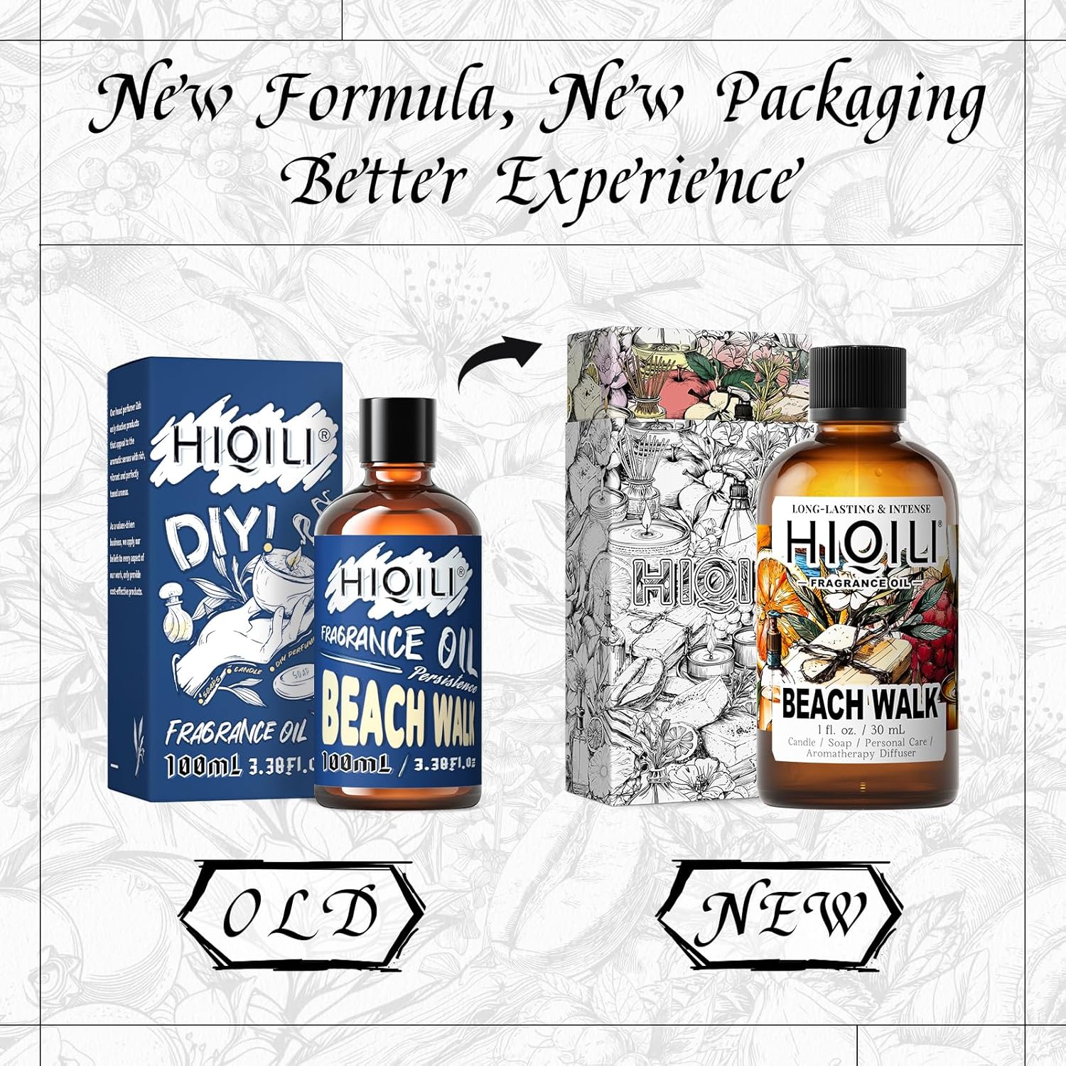 HIQILI Beach Walk Fragrance Oil for Diffuser & Humidifier, Candle & Soap Making, Luxury Hotel Scents, Perfect as a Gift - 1 Fl Oz