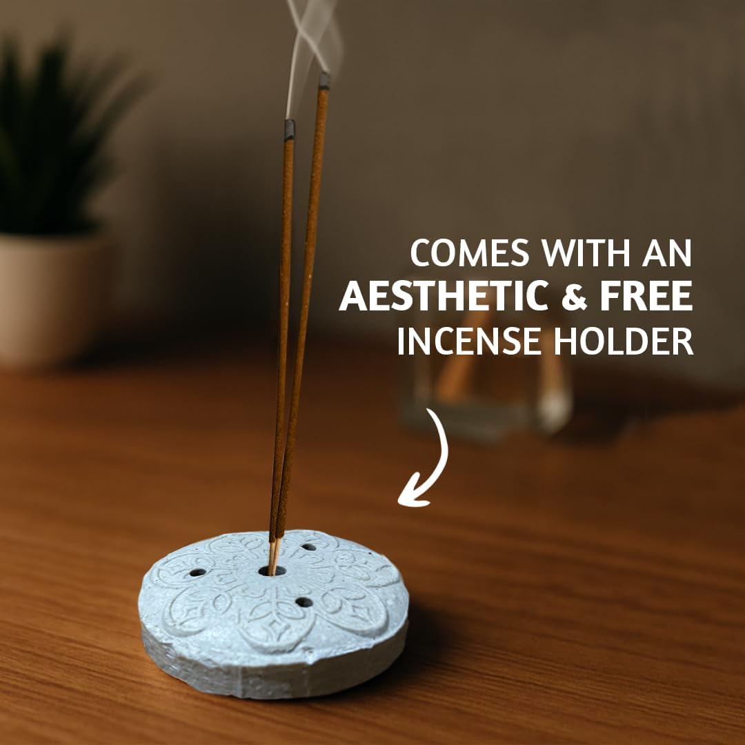 - [NATURAL & NON-TOXIC BURNING]: Our positive vibes incense are crafted from natural ingredients, ensuring a clean and non-toxic burn for your peace of mind. Completely carbon free these long lasting incense sticks make sure you have a clean and safe experience during your mediation and yoga routines. Grab these natural incense sticks non toxic for an elevated sensory journey.