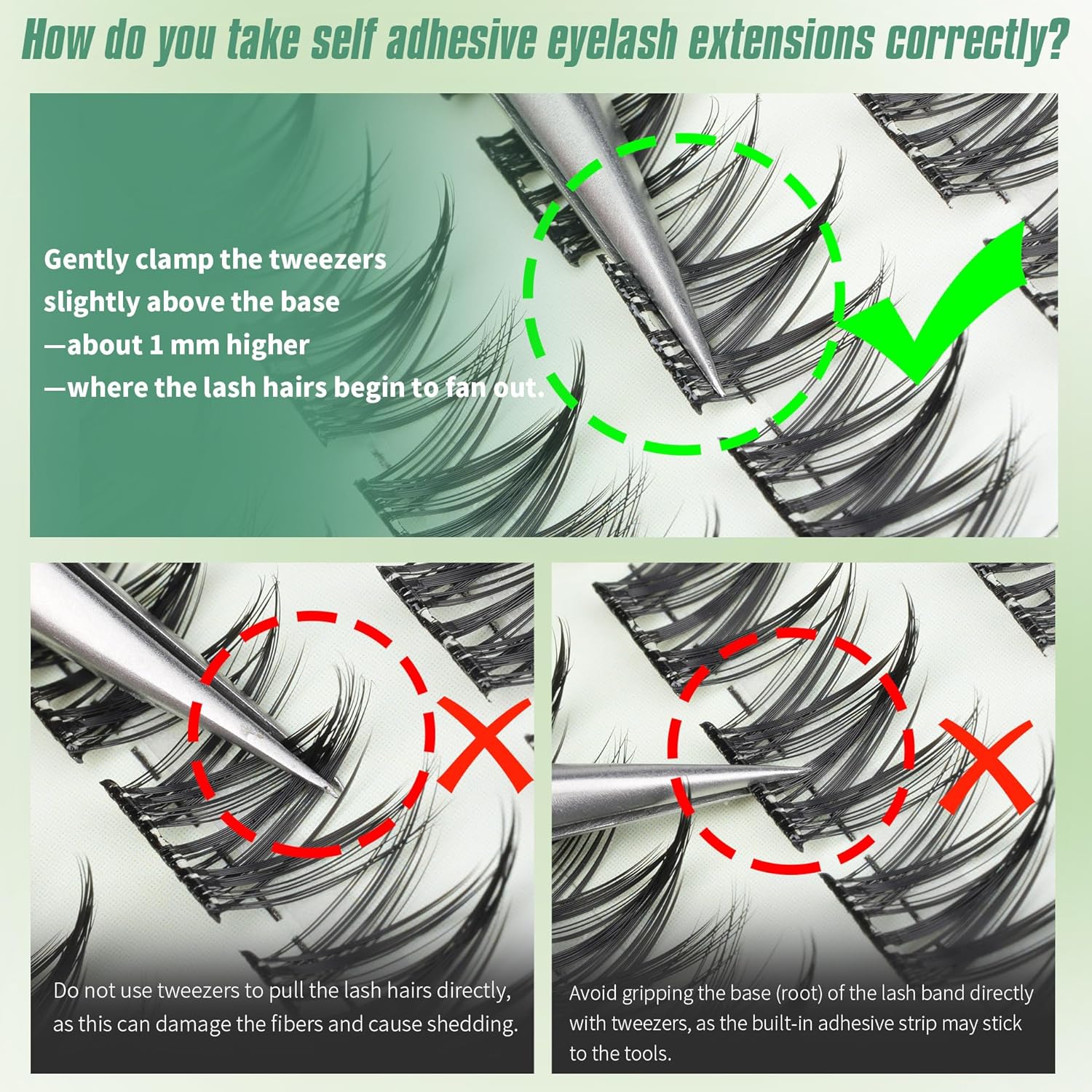- Made from ultra-soft, handcrafted fibers, these reusable wispy eyelash extensions deliver a featherlight, 0-burden feel. The self-adhesive technology ensures easy removal without tugging or irritation, preserving your natural lashes. Self-adhesive eyelash clusters can be cleaned and the self-adhesive tapes removed for continued use as regular cluster eyelashes with the right lash glue for your lashes, which can be reused many times for a cost-effective beauty upgrade.