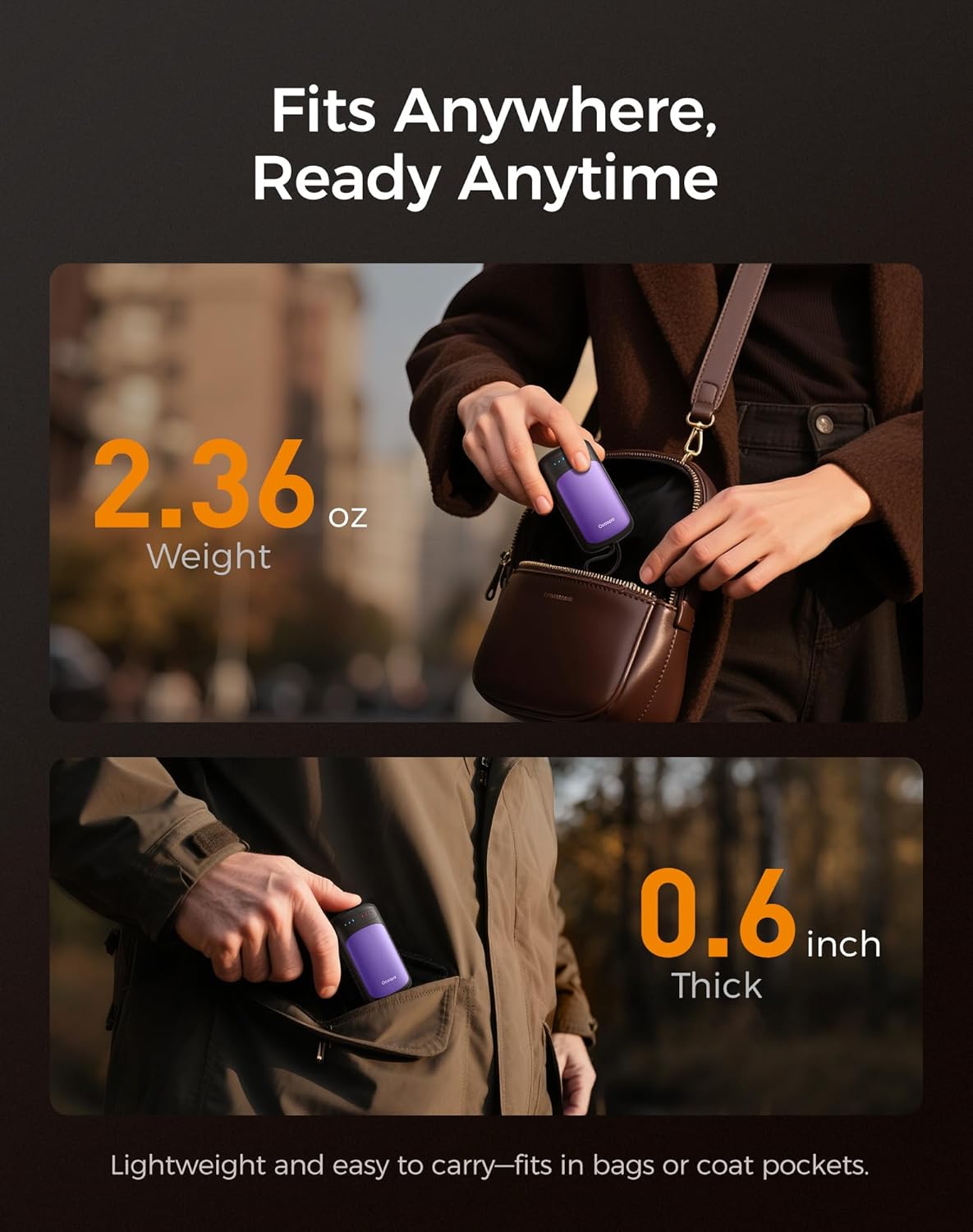 - Ergonomic & Stylish for All Hands â Sleek oval heater fits perfectly in any hand, making it a winter essential for musicians, crafters, tech workers, and anyone who needs heated hands without bulk. Includes LED screen and silicone lanyard for convenience.