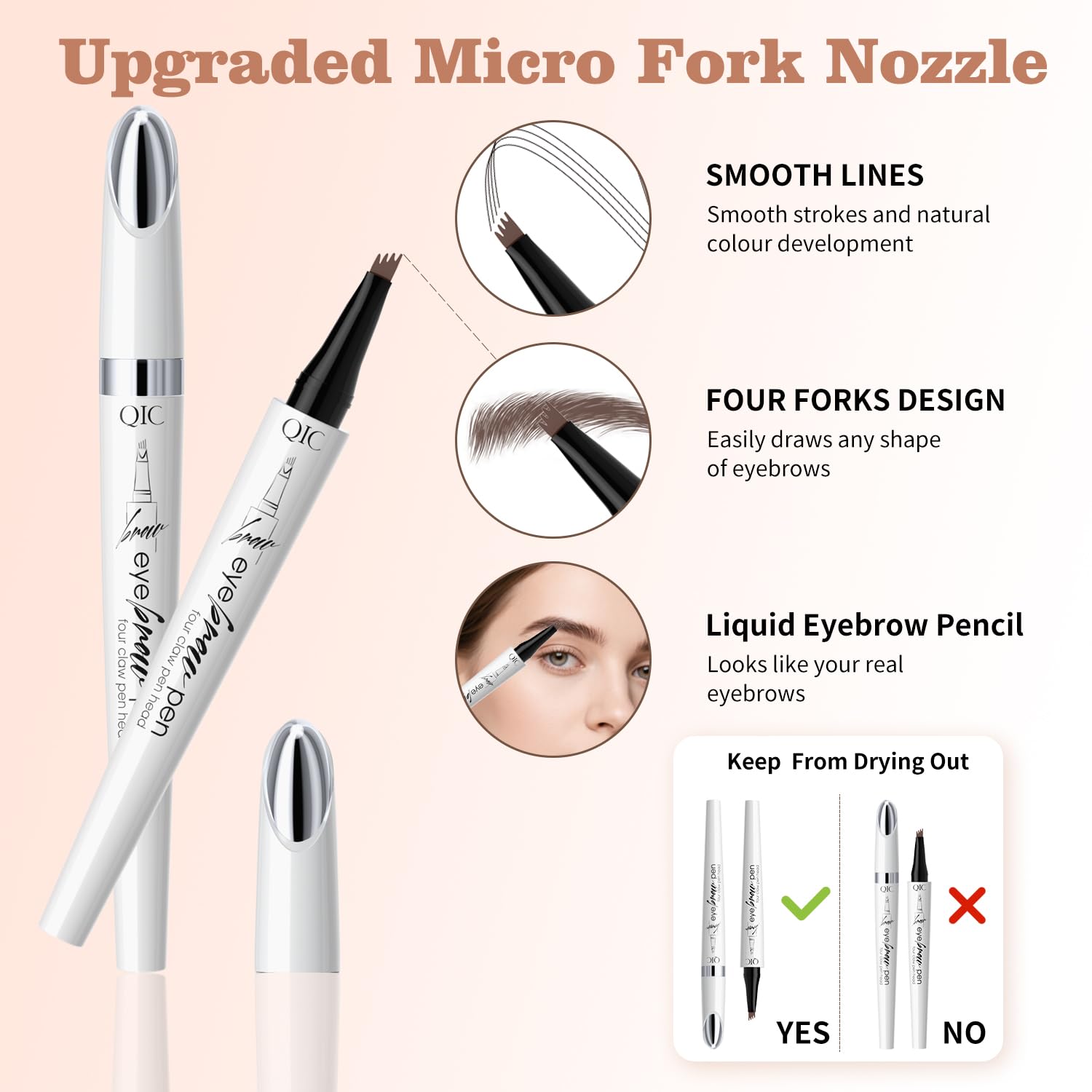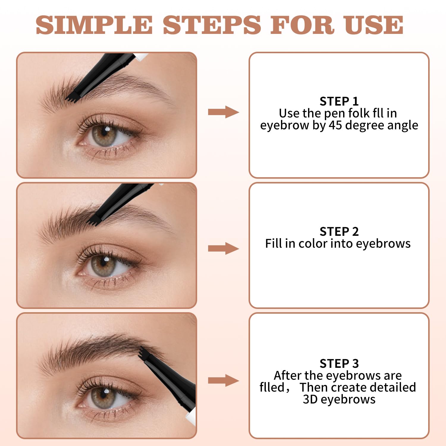 - 【EASY TO USE】: Three simple steps to complete your brows, first shake the eyebrow pencil liquid up and down a few times so that all the tips of the waterproof eyebrow pencil receive it. The next step is to fill in the areas you want to add depth and definition with the microfork tip. The final step is to use the eye brow pencil tip in the same way to add dimension to the brow look, especially where the brows are sparse