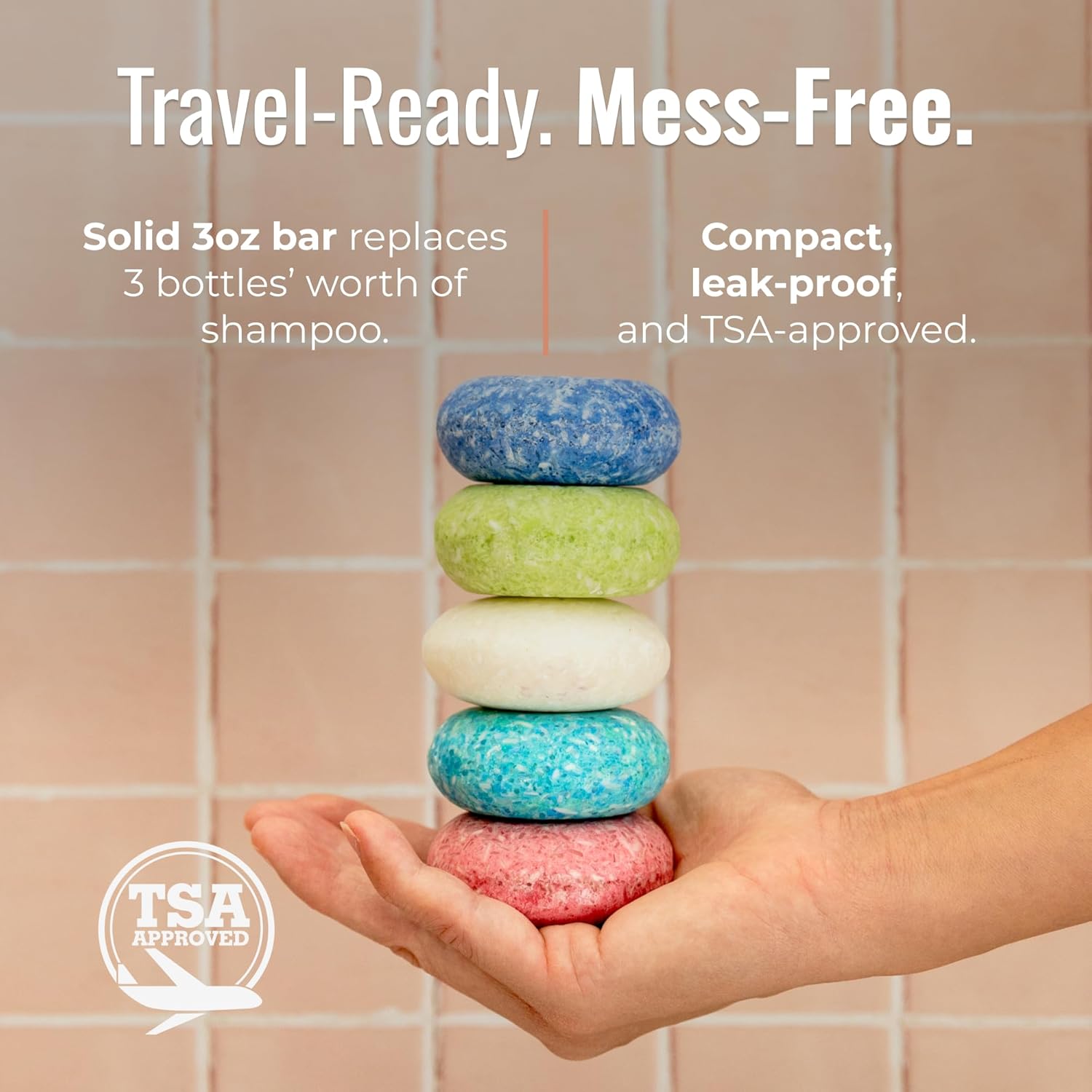 - COMPACT, TRAVEL-FRIENDLY DESIGN: Perfect for on-the-go lifestyles; this solid shampoo bar fits in any toiletry bag, is TSA approved, and won’t leak or weigh you down